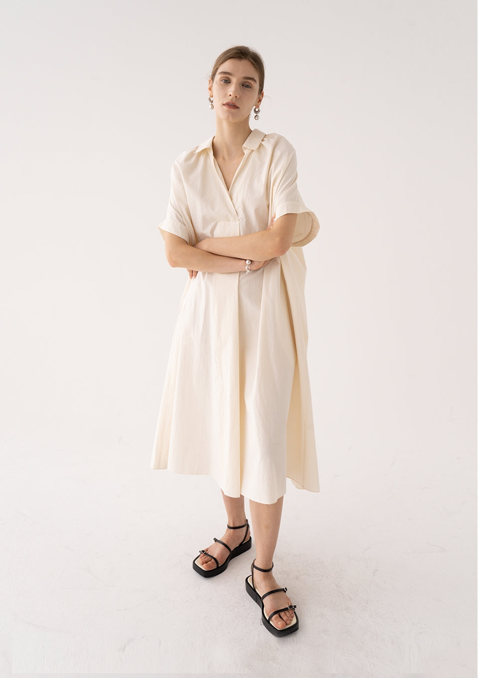 Crafted from breathable and lightweight linen, this A-line dress from Laura Ren redefines understated elegance. Designed with a relaxed fit, short sleeves, and a structured collar, the silhouette flows gracefully for all-day comfort and style. The pleated back detail enhances volume while the minimalistic front creates a clean, versatile look ideal for warm-weather sophistication. Whether you're heading to brunch, the office, or a resort getaway, this dress delivers modern femininity with timeless appeal. A true must-have in the Laura Ren collection for women who value refined simplicity in premium natural fabrics.