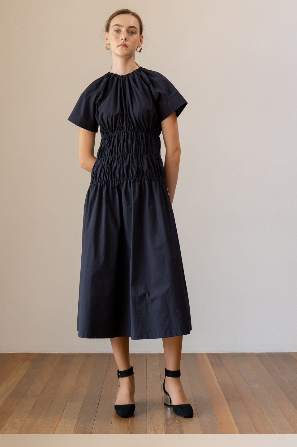 Embrace timeless elegance with this beautifully tailored linen midi dress from Laura Ren. Crafted from breathable, high-quality linen, this dress features a flattering A-line silhouette that drapes gracefully. The intricately shirred waistline cinches your figure while offering all-day comfort and flexibility. With soft pleats and short sleeves, this piece transitions seamlessly from day to evening wear. Whether styled casually or dressed up with accessories, this linen dress embodies modern femininity and elevated design—perfect for warm-weather sophistication.