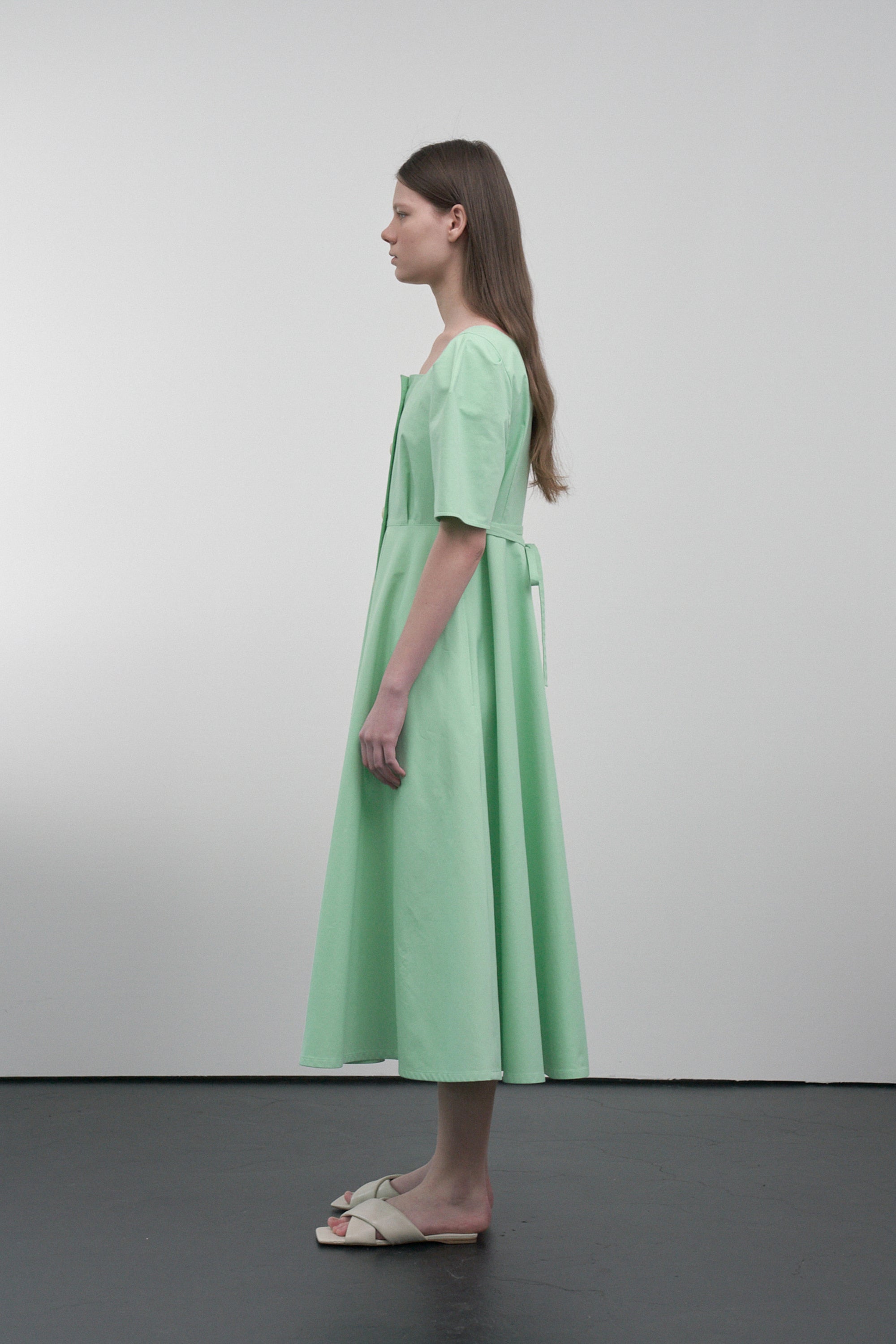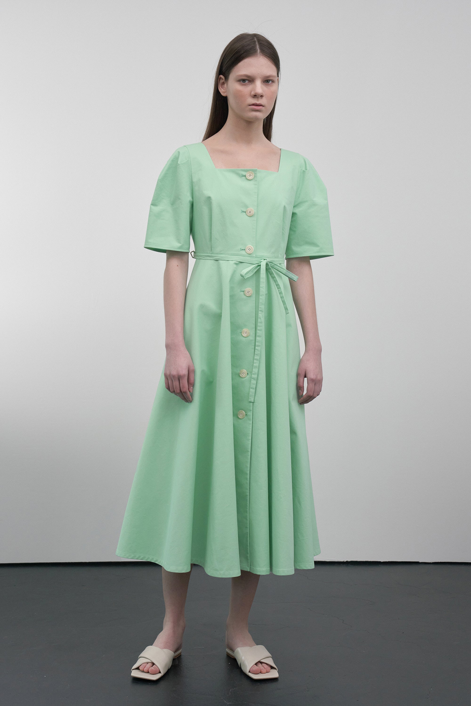 Crafted from breathable, high-quality cotton poplin, this midi dress from Laura Ren epitomizes understated elegance. Designed with a refined square neckline, structured short sleeves, and a softly flared A-line silhouette, it balances classic femininity with modern minimalism. The front button closure adds subtle detail, while a matching waist tie cinches for a flattering shape. Ideal for warm-weather dressing, this versatile piece transitions seamlessly from day to evening. Whether worn with sandals or styled up with heels, it’s a timeless staple for the contemporary woman. Laura Ren's dedication to tailored sophistication and premium fabrics is evident in every stitch of this beautifully constructed dress.