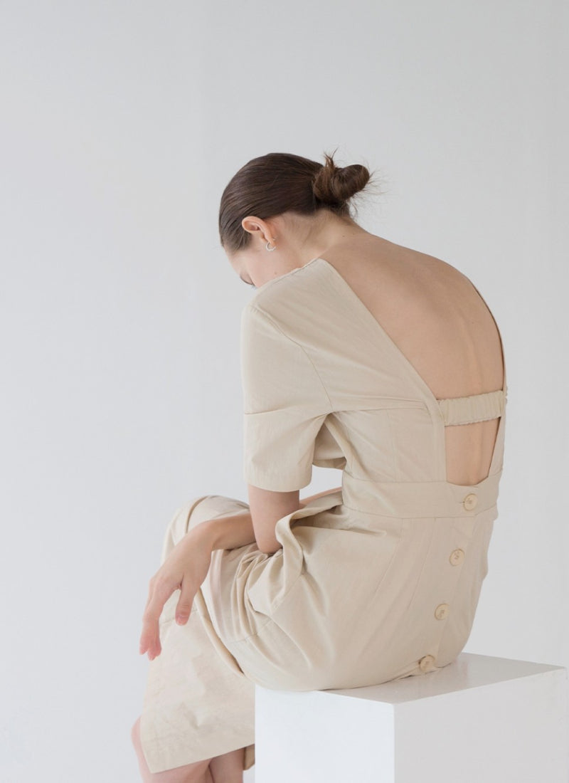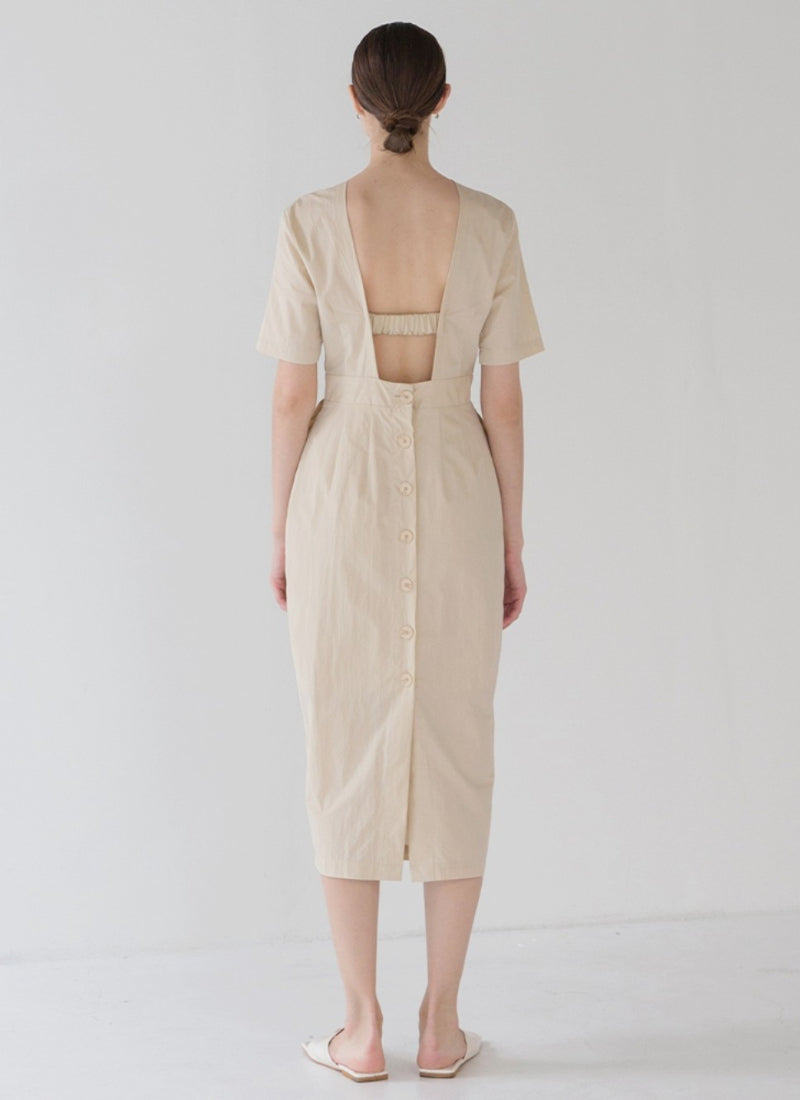 Step into refined simplicity with this elegant linen midi dress from Laura Ren. Designed with a modest front and a striking open back, this dress effortlessly blends sophistication with modern minimalism. Crafted from breathable, high-quality linen, it features a flattering cinched waist, short sleeves, and a full button-down back that adds subtle vintage charm. Whether for a summer gathering or a resort getaway, this timeless silhouette is perfect for warm-weather elegance. Laura Ren's commitment to thoughtful tailoring and natural fabrics ensures this piece will become a wardrobe essential for seasons to come.