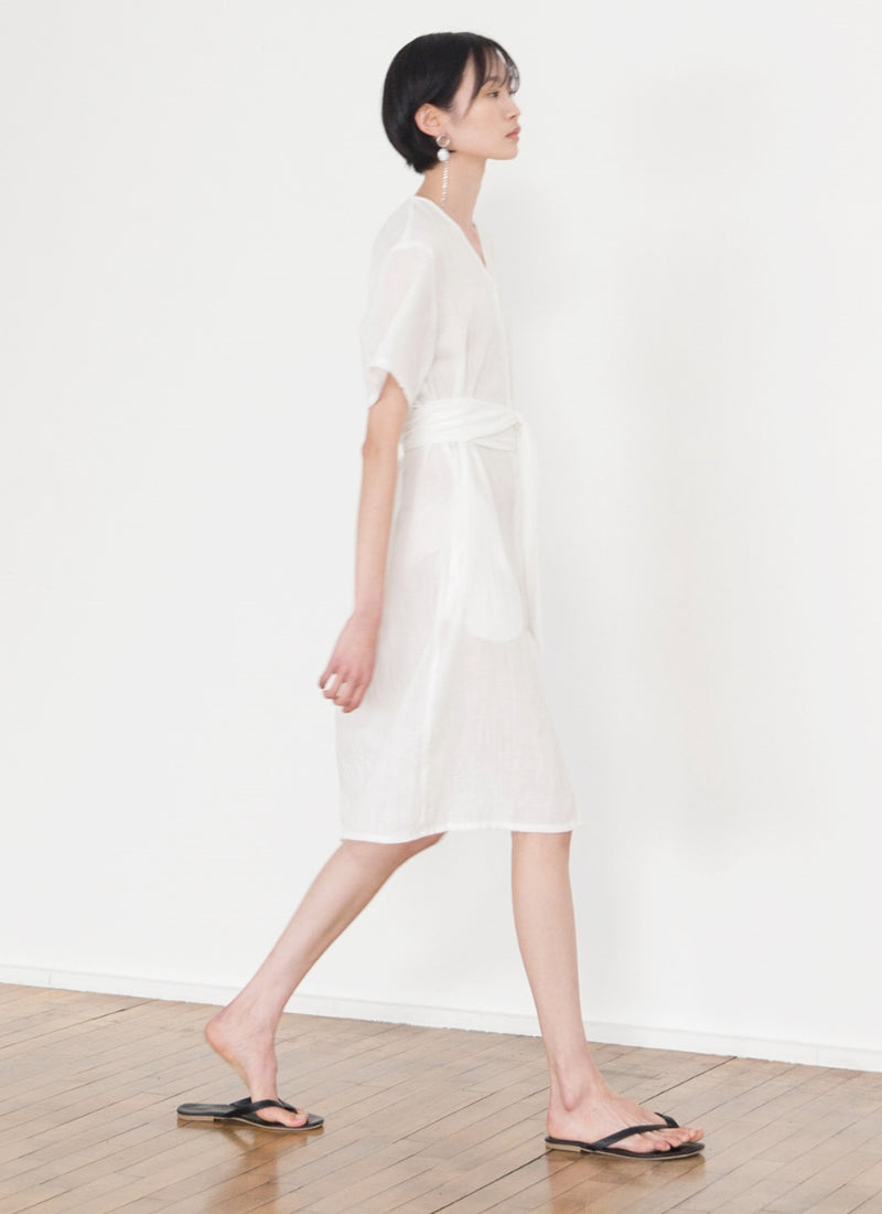 Discover effortless elegance with this short-sleeve linen midi dress by Laura Ren. Crafted from lightweight, breathable linen, this dress features a flattering V-neckline, button-down front, and a self-tie waistbelt for a customizable silhouette. The refined cut offers both comfort and style, making it ideal for warm-weather outings, beach days, or relaxed city strolls. Its minimalist design embraces timeless sophistication, while the natural texture of linen adds a subtle, luxurious touch. Designed for women who appreciate clean lines and premium natural fabrics, this piece pairs easily with sandals or slides for an elevated casual look.