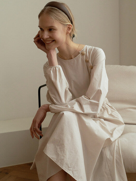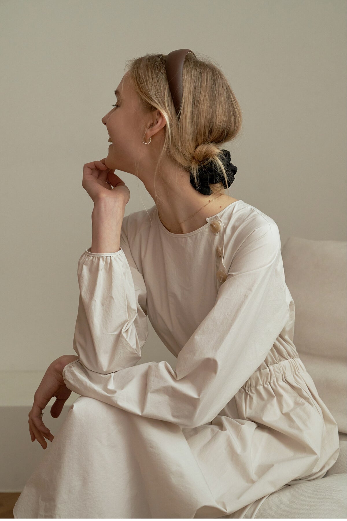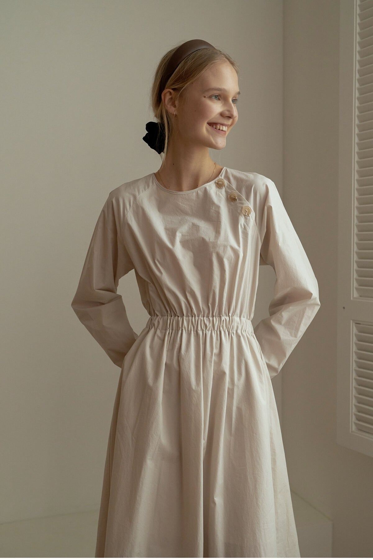 The cotton poplin midi dress from Laura Ren brings refined ease to everyday dressing. Designed in a structured yet breathable cotton poplin, it features long sleeves, a crew neckline, and a cinched elastic waist that enhances the natural silhouette. The mid-length hemline and relaxed drape offer timeless sophistication while ensuring all-day comfort. Subtle detailing like shoulder buttons adds understated charm. This is a versatile wardrobe essential that pairs beautifully with flats or heels, ideal for both elevated casual and polished occasions. Crafted for the woman who values comfort, elegance, and clean lines.