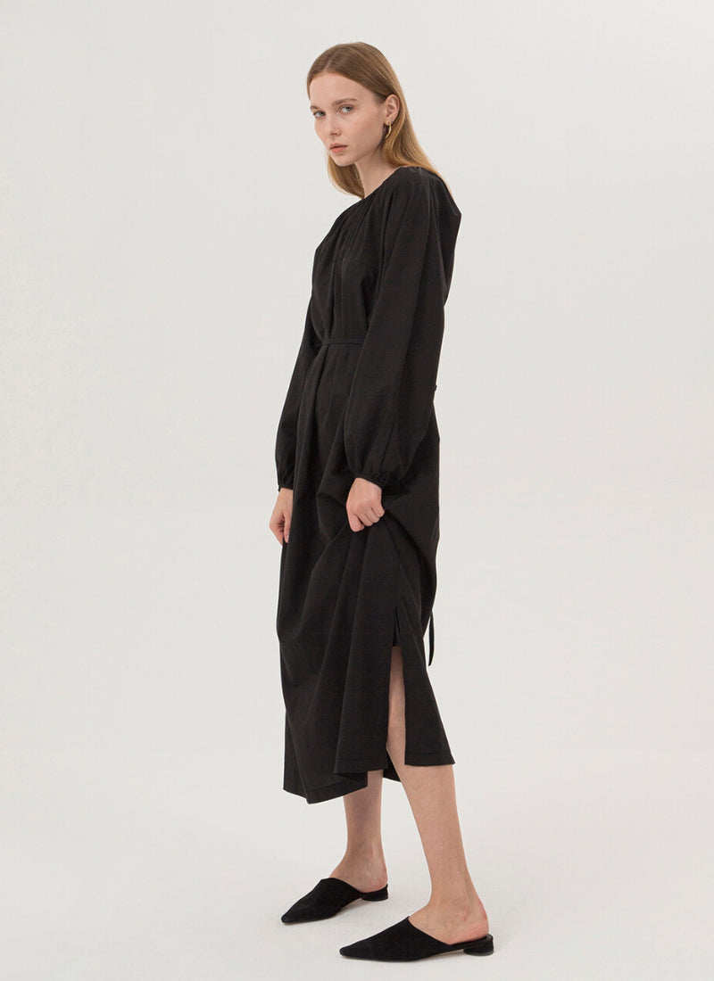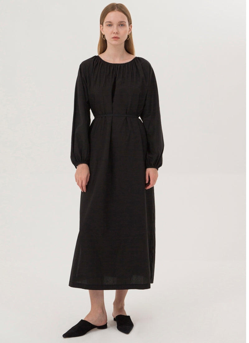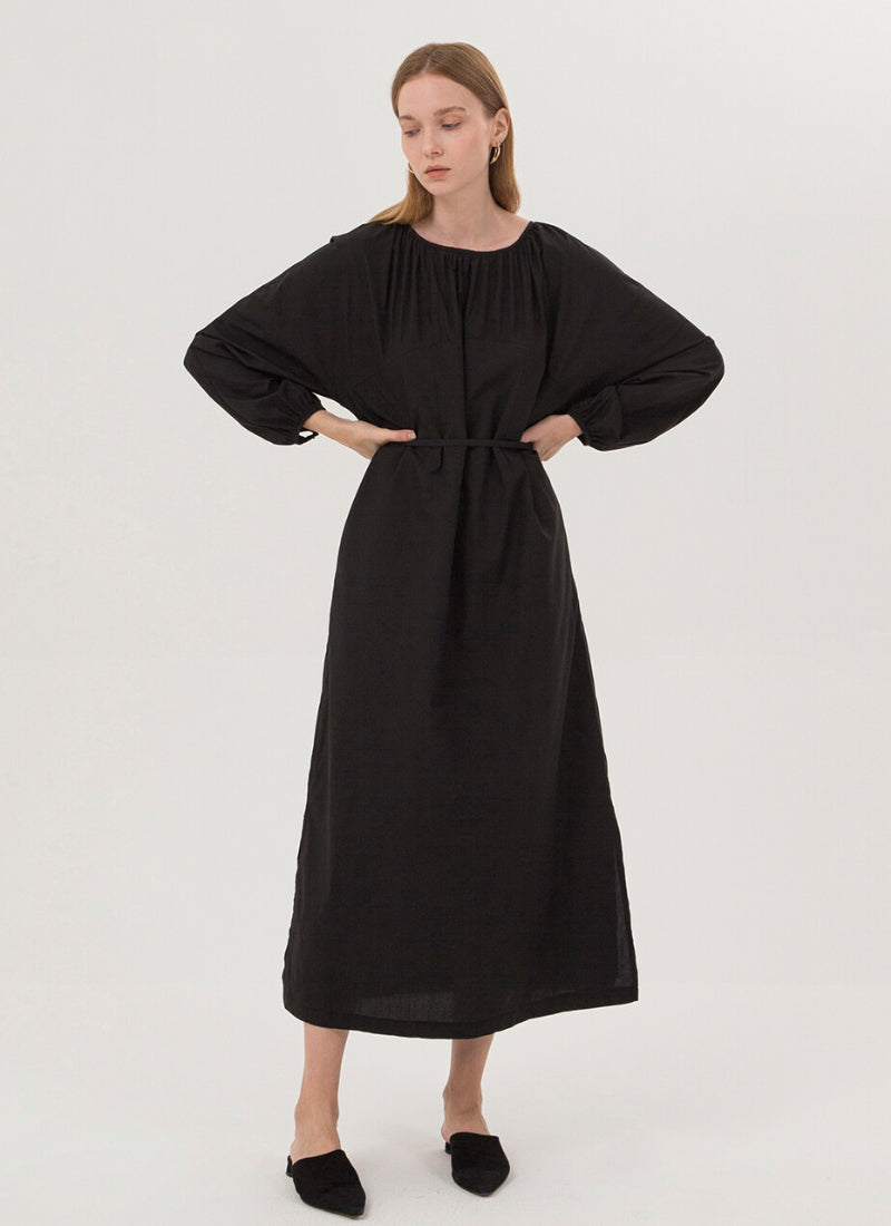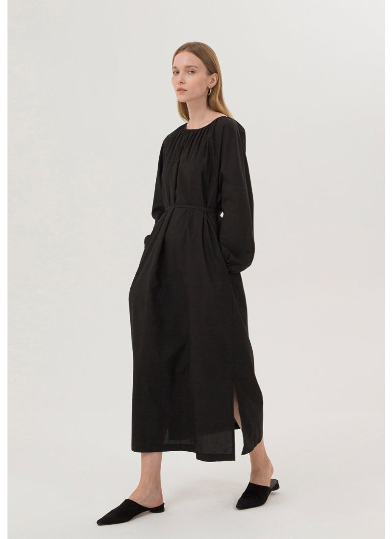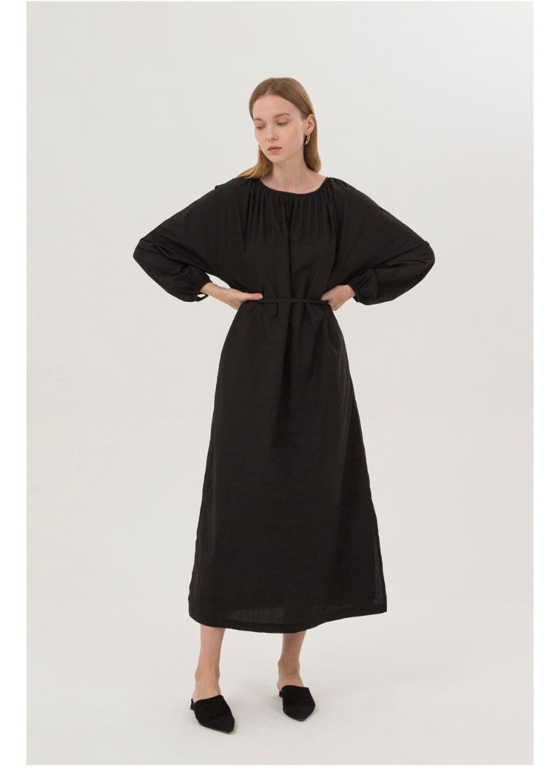 Elevate your wardrobe with this refined long sleeve midi dress crafted from premium breathable linen. Designed by Laura Ren, this dress features a gathered neckline and a relaxed yet flattering silhouette, enhanced by a self-tie waist for adjustable shaping. The lightweight linen fabric offers exceptional comfort and a naturally elegant drape, perfect for both daytime wear and evening occasions. With side slits for ease of movement and full-length sleeves for coverage, this versatile piece effortlessly blends timeless design with modern sophistication. A must-have staple for the discerning woman who values quality, craftsmanship, and enduring style.