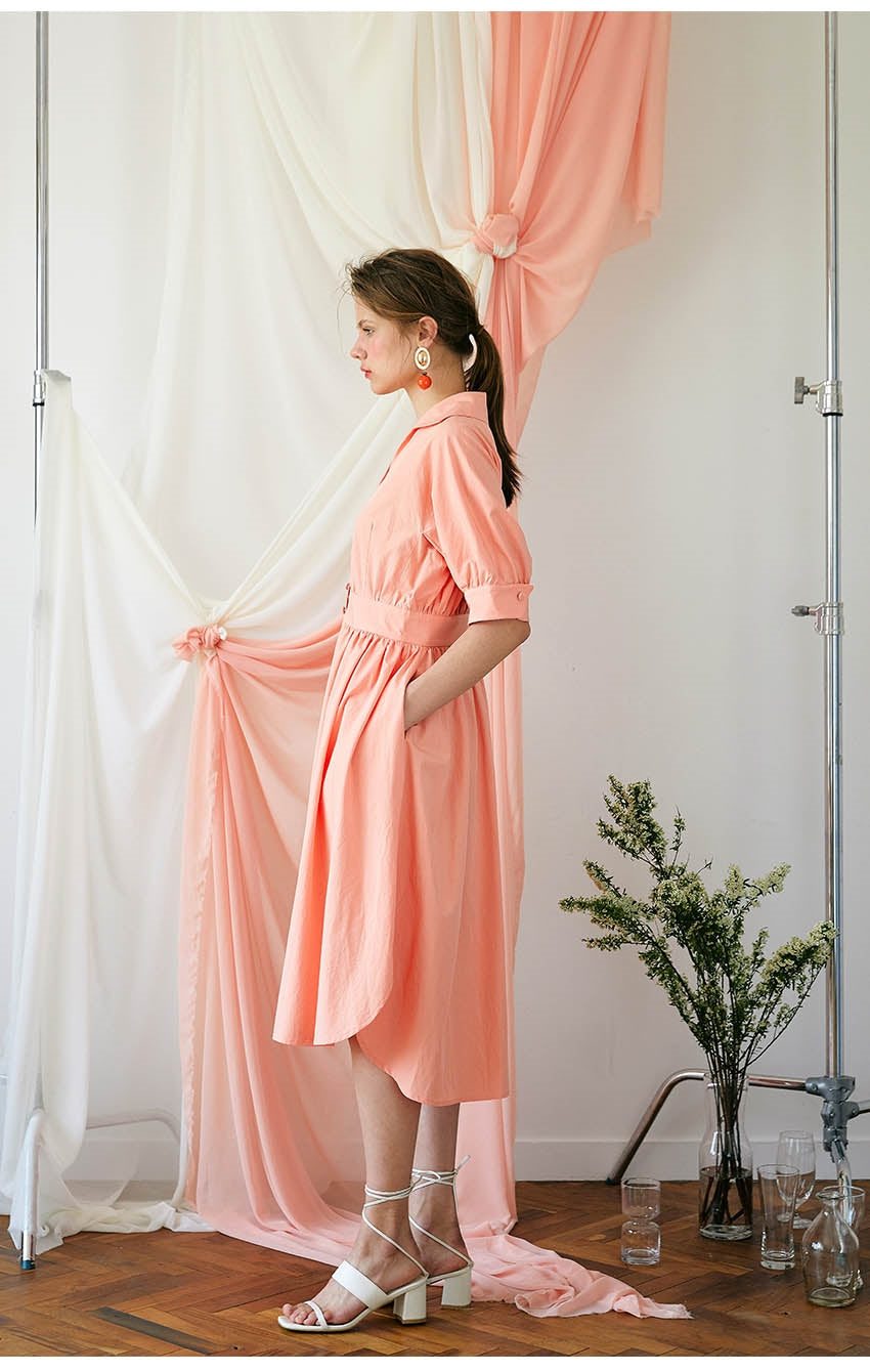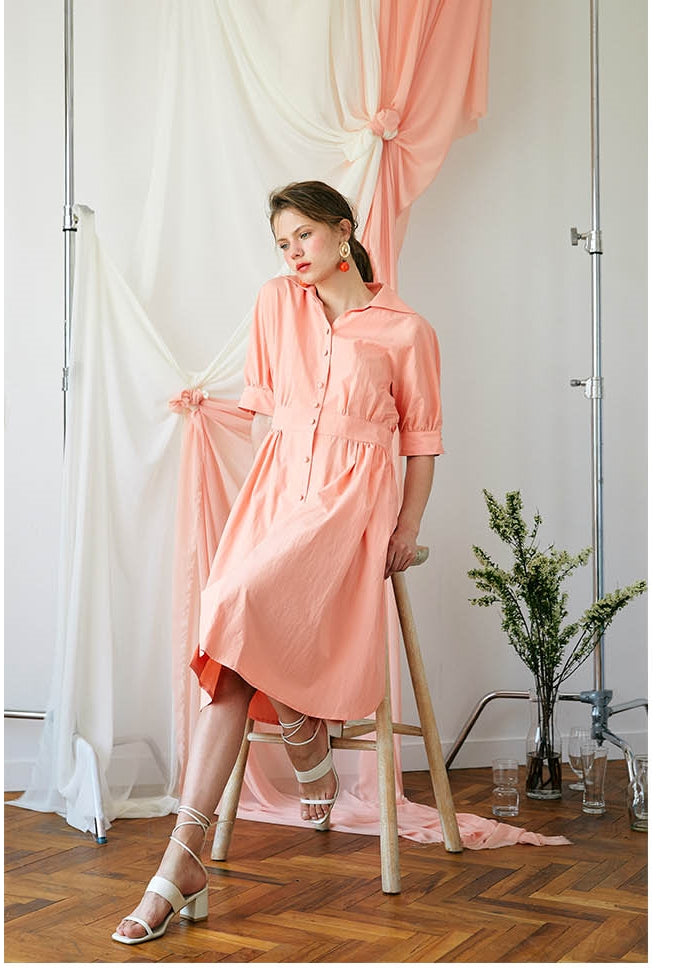 Experience refined style with this elegant cotton poplin dress by Laura Ren, designed to elevate your warm-weather wardrobe. Crafted from high-quality, breathable cotton poplin fabric, this midi-length dress features a flattering button-down front, structured waistband, and softly gathered skirt for graceful movement. The smart collar and cuffed short sleeves enhance its timeless silhouette, making it a versatile choice for daytime elegance or semi-formal occasions. Perfectly balanced between comfort and polish, the Laura Ren cotton poplin dress is a wardrobe essential for the modern woman seeking both sophistication and ease.