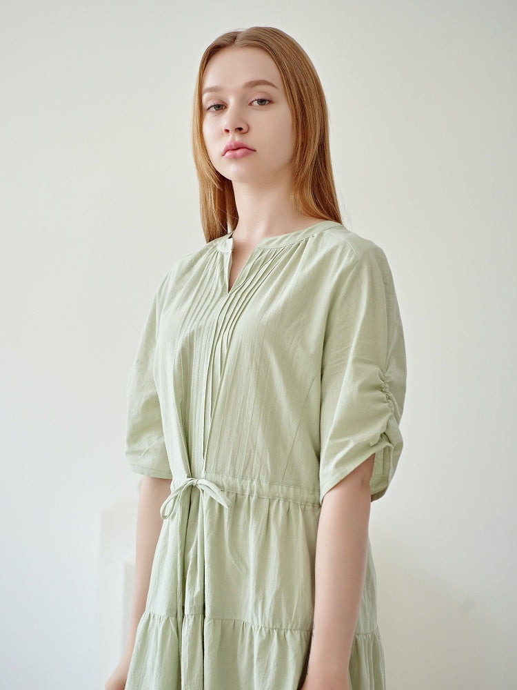 Elevate your wardrobe with this elegant pleated midi dress from Laura Ren, crafted from premium breathable linen for effortless sophistication. Designed for both comfort and style, this dress features a tiered silhouette with subtle pleating along the bodice and an adjustable drawstring waist for a flattering fit. The relaxed sleeves and modest V-neckline offer timeless appeal, while the natural texture of linen adds understated luxury. Perfect for warm-weather occasions or refined casual outings, this midi dress blends classic charm with contemporary ease. Step into effortless elegance with this versatile linen piece by Laura Ren.