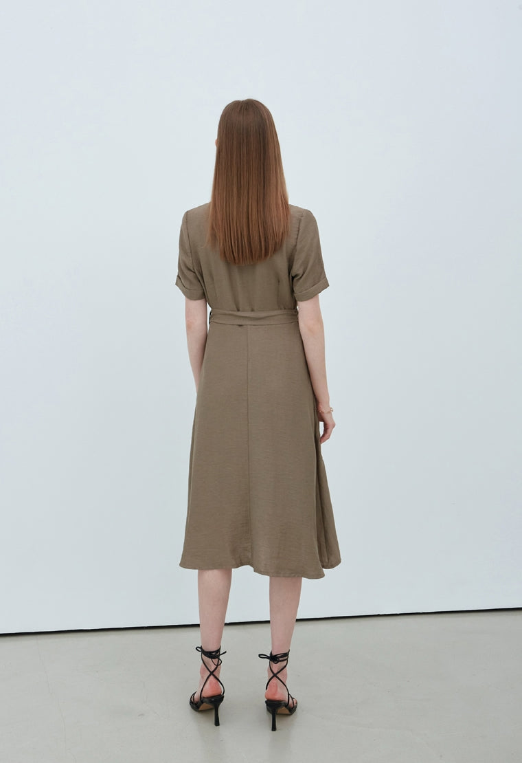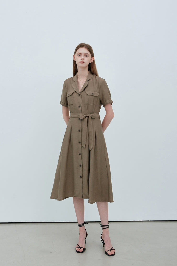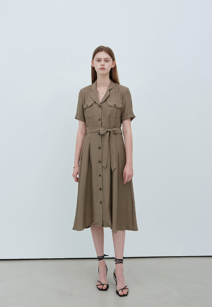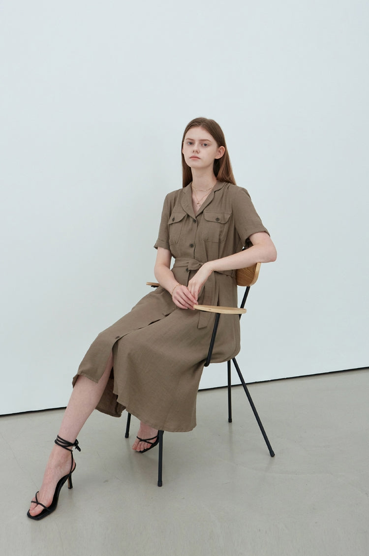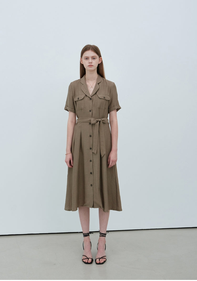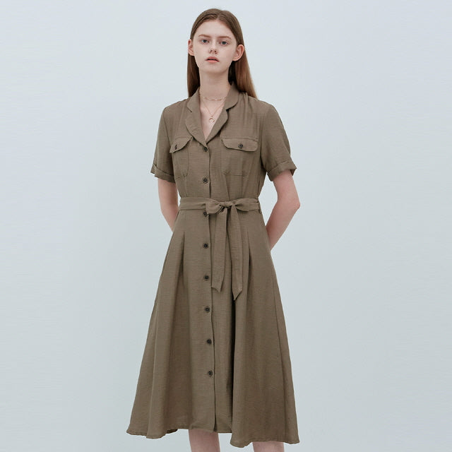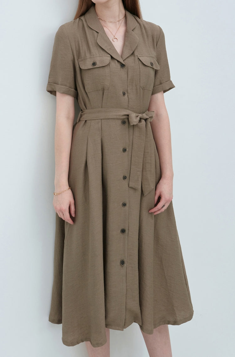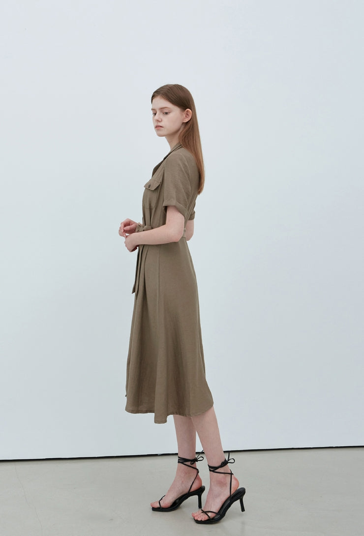 Effortlessly refined and timeless, this short sleeve button-front linen dress from Laura Ren is crafted to offer both style and comfort. Made from breathable linen, this midi-length silhouette features a gently flared hem, structured lapel collar, and functional chest pockets for added utility. A matching fabric waist tie cinches the waist for a flattering fit, while the soft drape of the fabric allows graceful movement. Perfect for workdays or weekend getaways, this linen shirt dress transitions seamlessly between seasons. Pair it with sandals or heels for versatile styling. Laura Ren redefines modern elegance with this wardrobe essential.