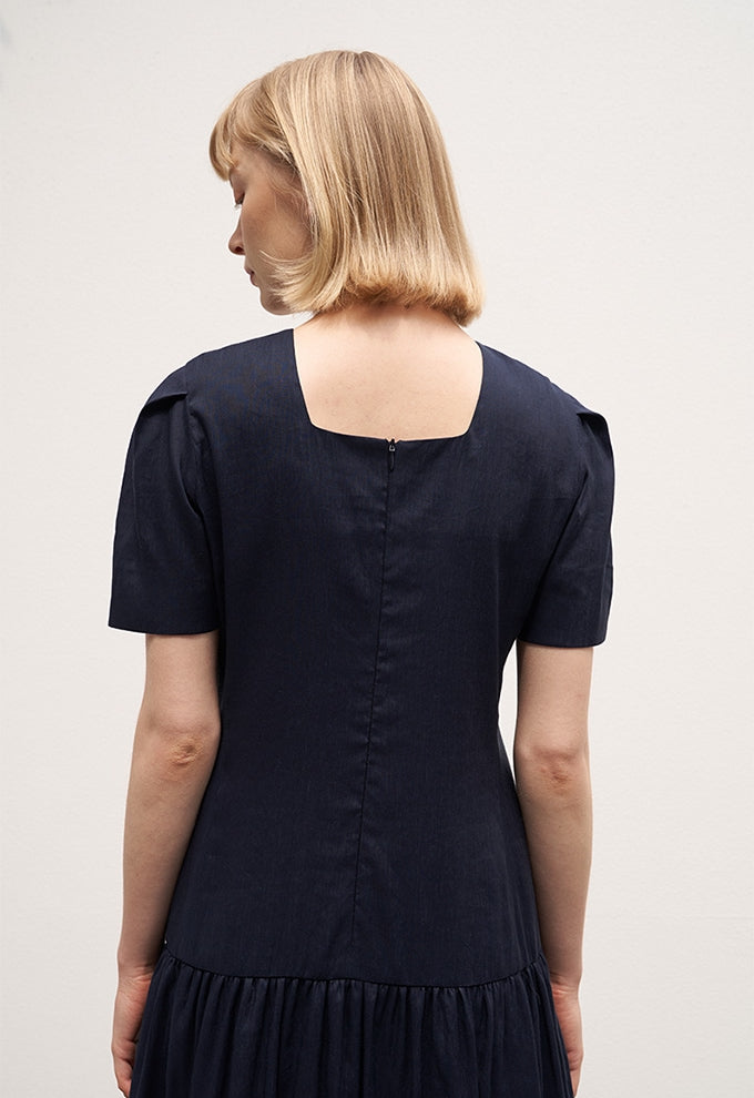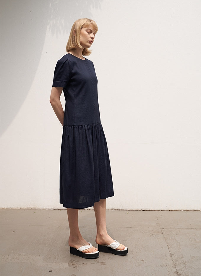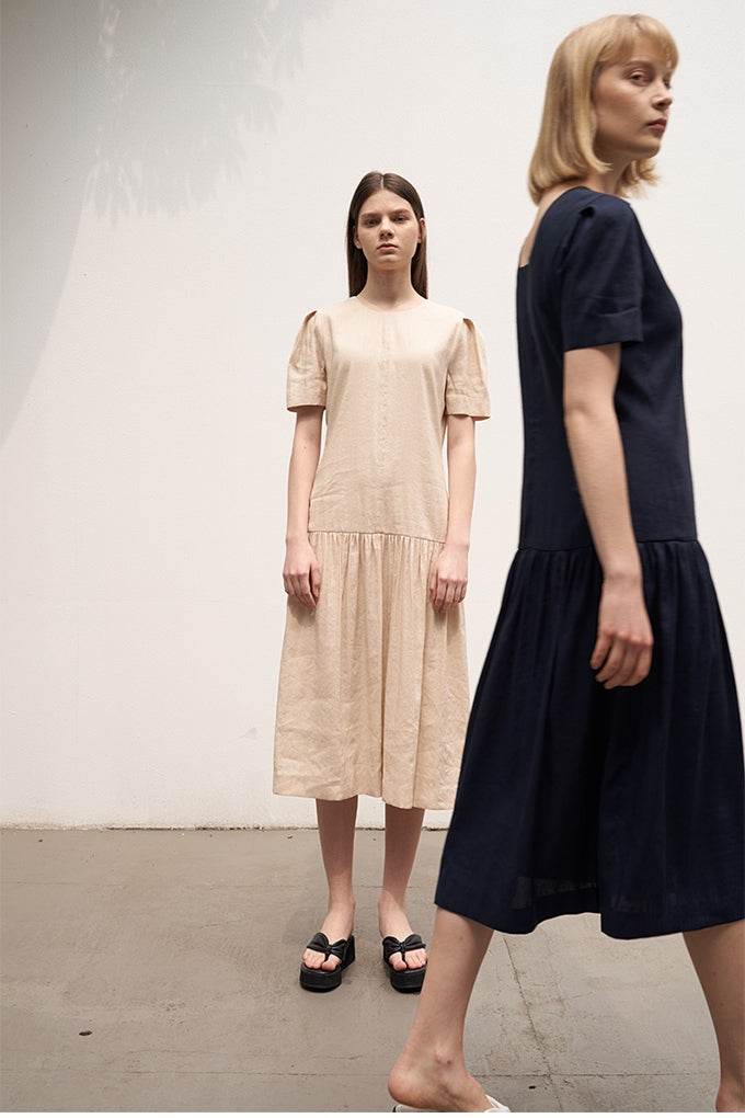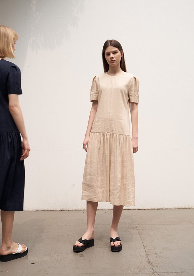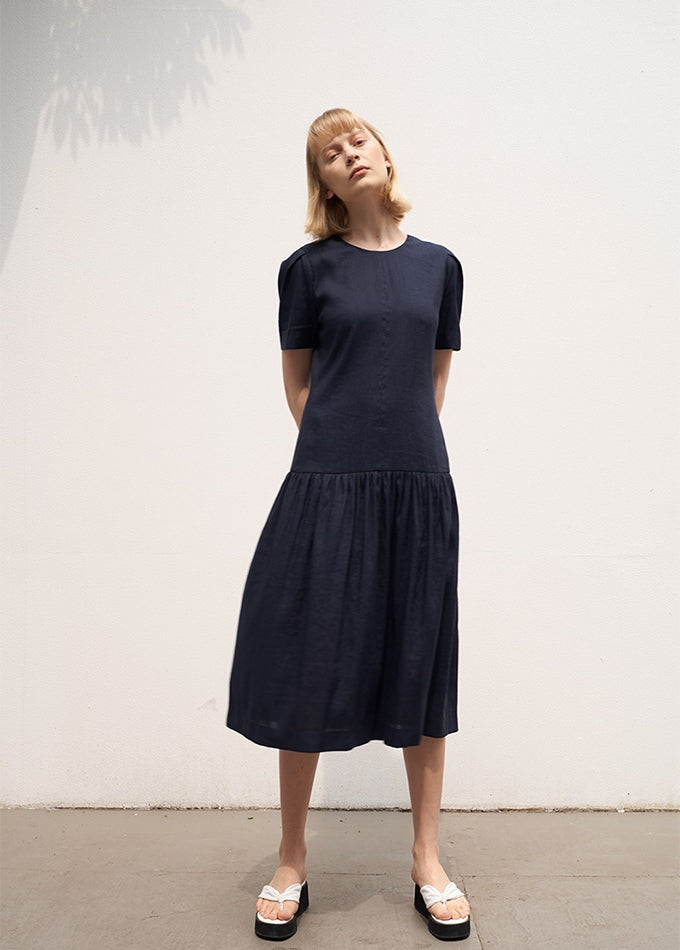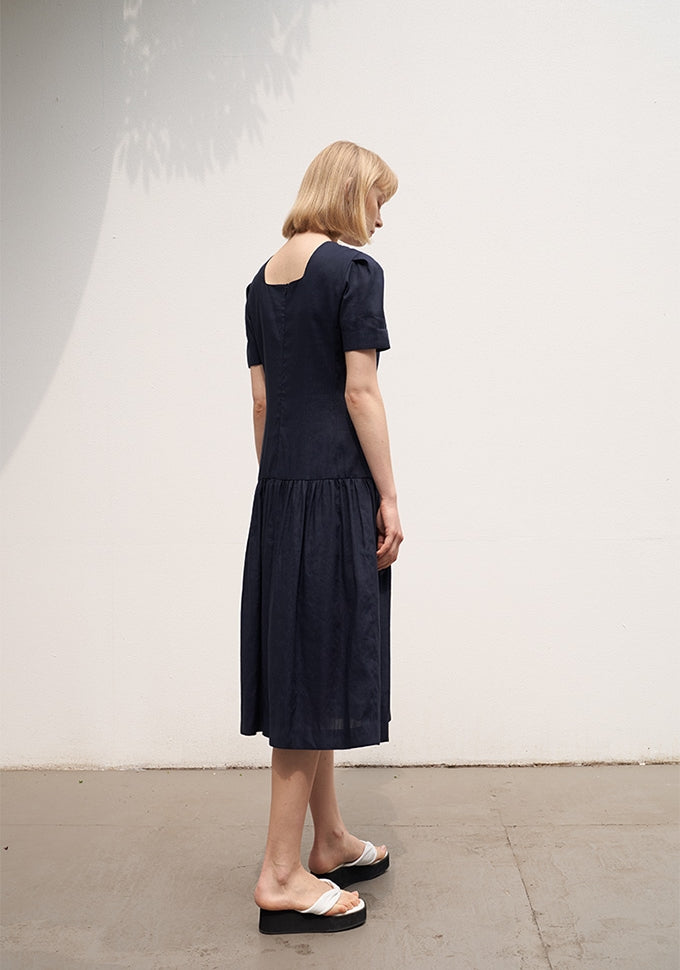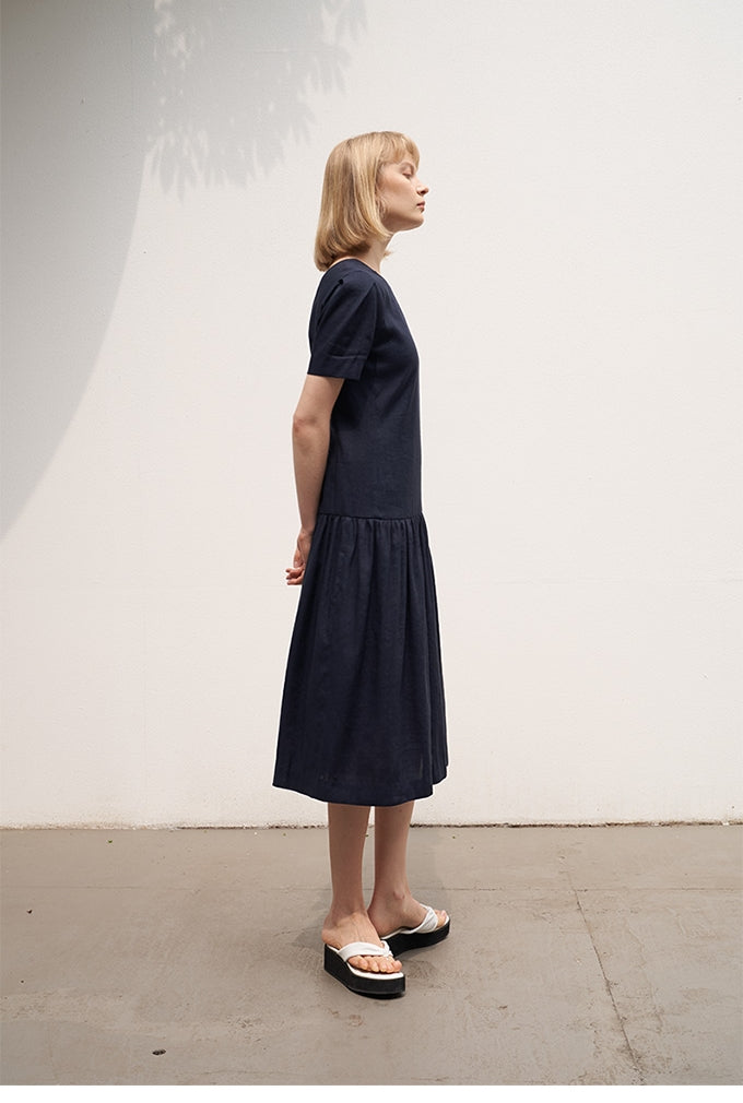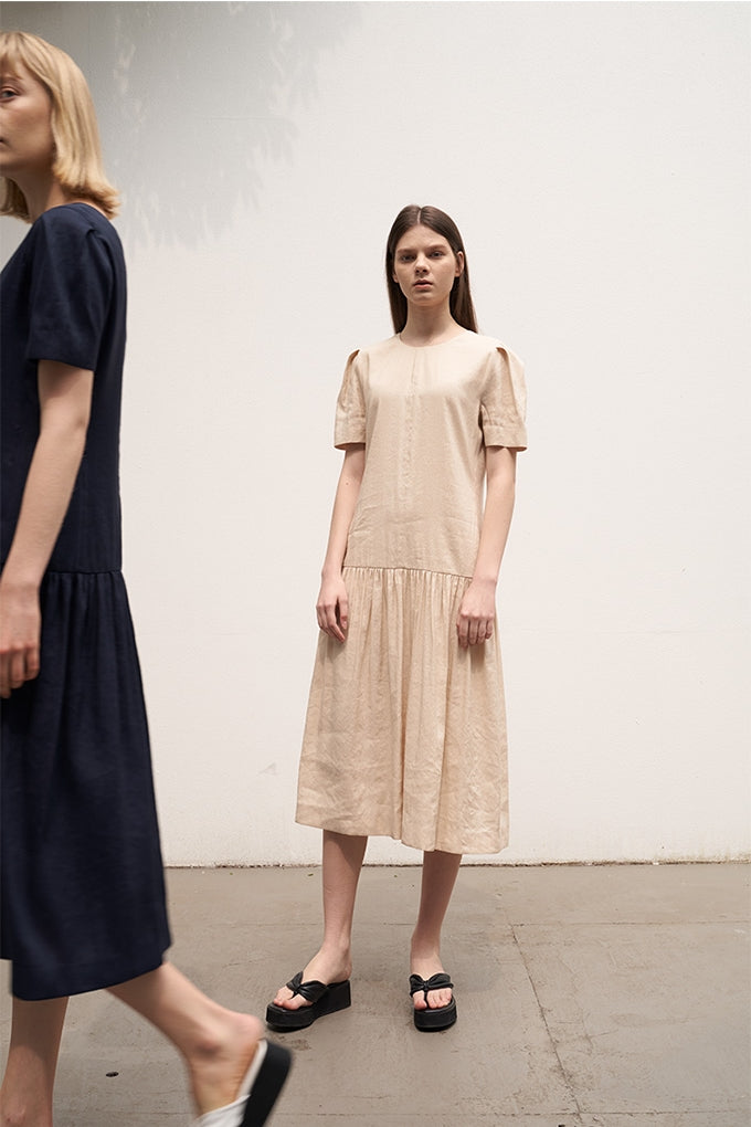 Crafted for timeless appeal, this elegant midi dress by Laura Ren is made from premium-quality breathable linen, perfect for warm-weather sophistication. Featuring a refined round neckline, structured short sleeves, and a beautifully gathered skirt, this dress offers a relaxed yet polished silhouette. The scoop-back detail adds a subtle feminine charm, making it suitable for both casual elegance and dressed-up occasions. Designed with versatility and comfort in mind, this linen dress seamlessly blends minimalist design with luxurious texture—an ideal choice for elevated everyday wear or resort-ready ensembles.