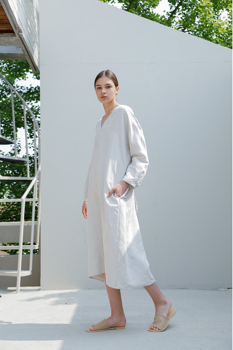 Crafted from breathable, high-quality linen, this sleeveless A-line dress by Laura Ren blends effortless comfort with timeless elegance. Featuring a flattering V-neckline, wide shoulder straps, and a loose, flowy silhouette, it offers both structure and ease for warm-weather styling. The soft fabric drapes beautifully, enhancing its relaxed fit while allowing for fluid movement. Whether worn casually with sandals or dressed up with heels, this linen dress is a refined staple ideal for sunny days, beach getaways, or resort lounging. Designed with subtle tailoring and attention to detail, Laura Ren's linen dress brings a minimalist yet sophisticated edge to any summer wardrobe.