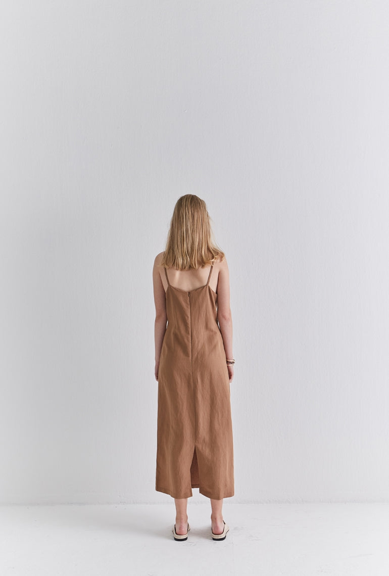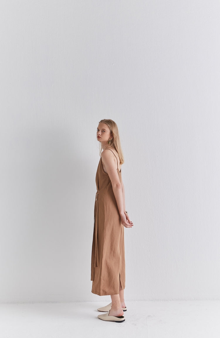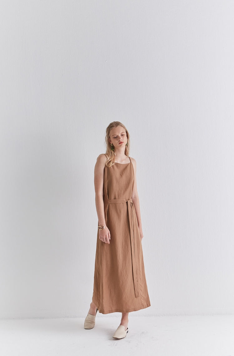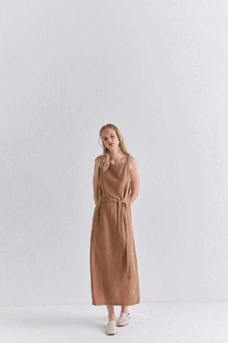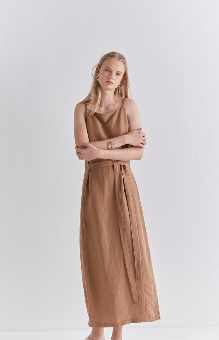 Crafted from breathable, high-quality linen, this sleeveless midi dress by Laura Ren redefines effortless sophistication. Designed with a flattering square neckline and a detachable waist belt, it accentuates the natural silhouette while offering day-long comfort. The midi length and clean tailoring provide a graceful look that transitions seamlessly from casual brunches to relaxed evenings. The open back detail adds a modern twist to the timeless aesthetic. Pair it with sandals for summer ease or layer with a lightweight cardigan for cooler days. A staple in any elevated wardrobe, this linen dress reflects Laura Ren’s refined approach to luxury womenswear.