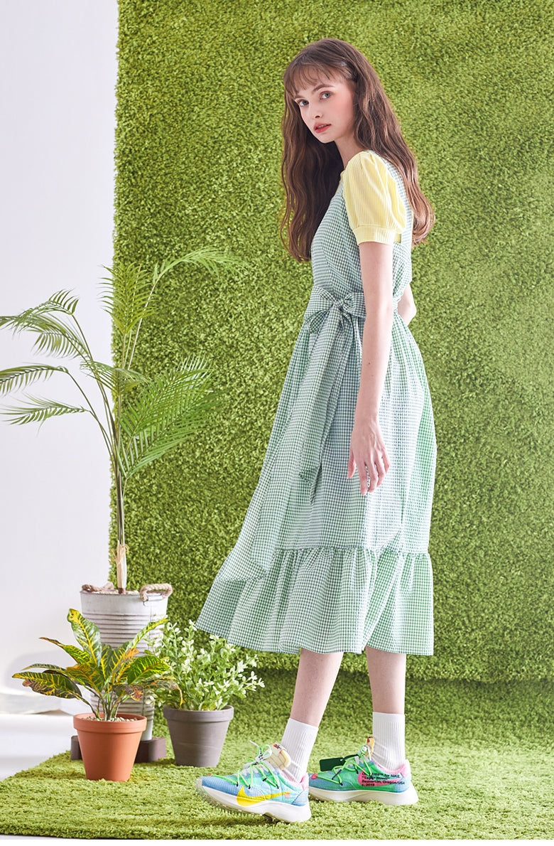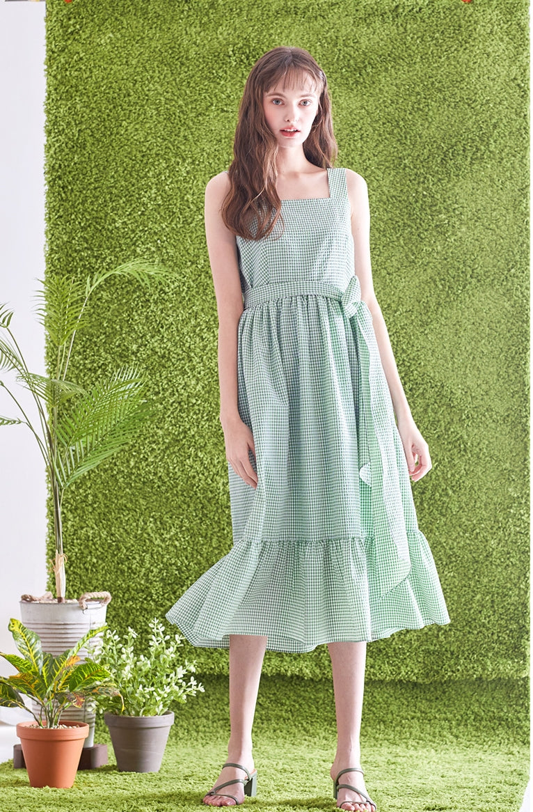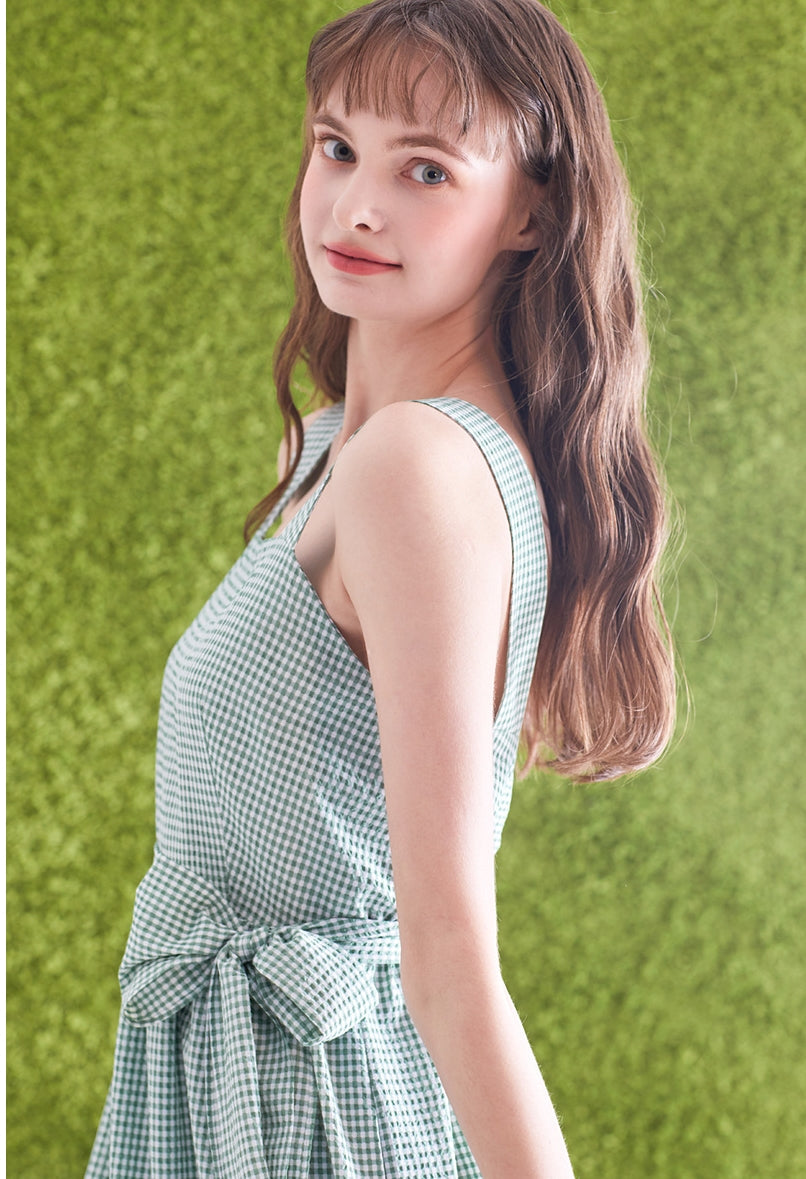 Discover feminine charm with a playful twist in this gingham check linen midi dress by Laura Ren. Crafted from breathable, lightweight linen, this piece features a flattering A-line silhouette, adjustable shoulder straps, and a charming twisted back design that adds visual interest. The gathered waist and ruffled hem create soft movement and flow, ideal for sunny days and casual garden parties. Whether paired with sandals or styled up with sneakers, this gingham linen dress captures youthful elegance with a touch of countryside romance. Laura Ren brings you fashion that balances comfort, style, and artisanal detail in every stitch.