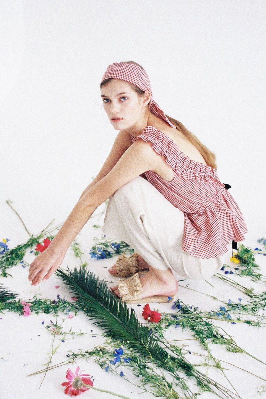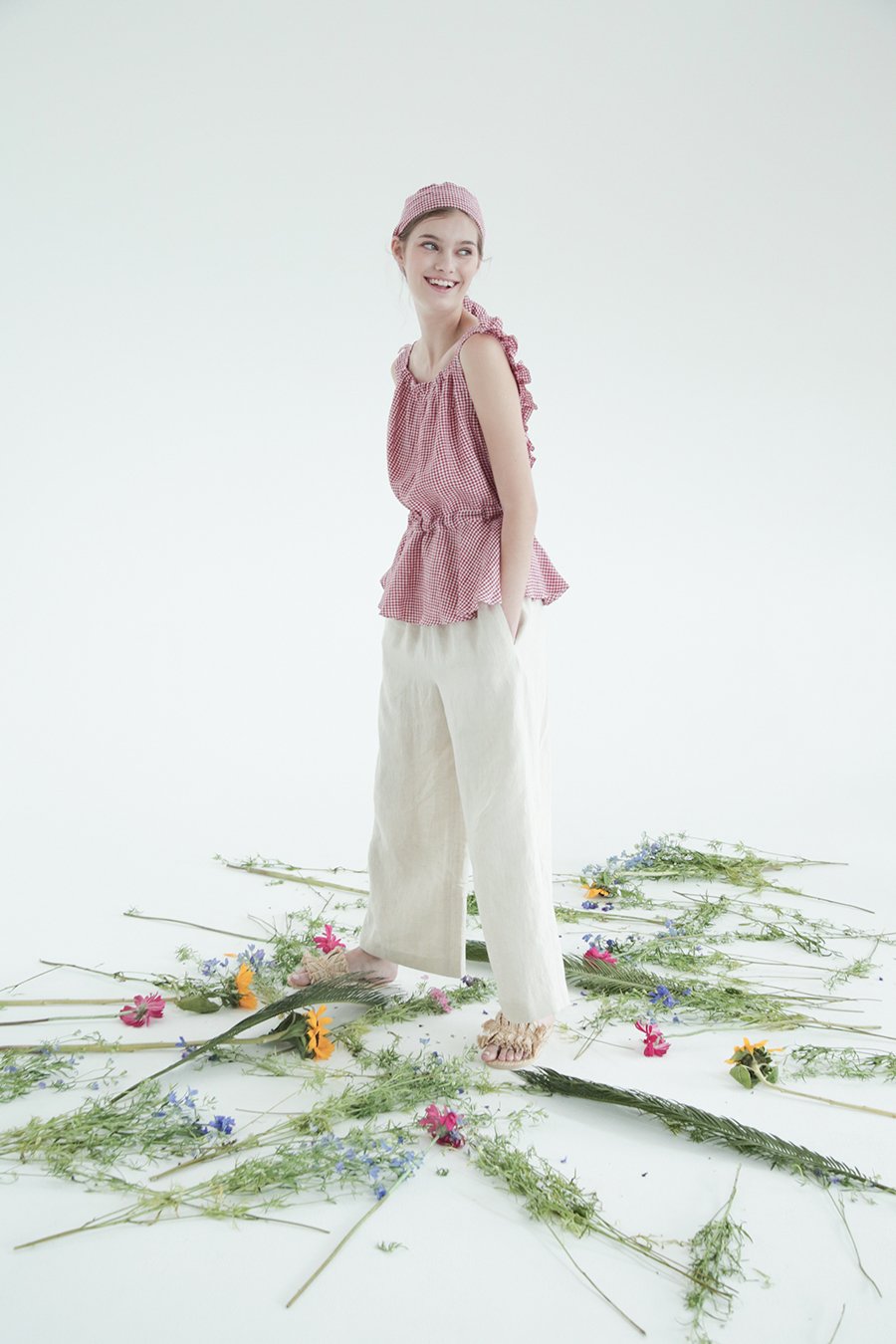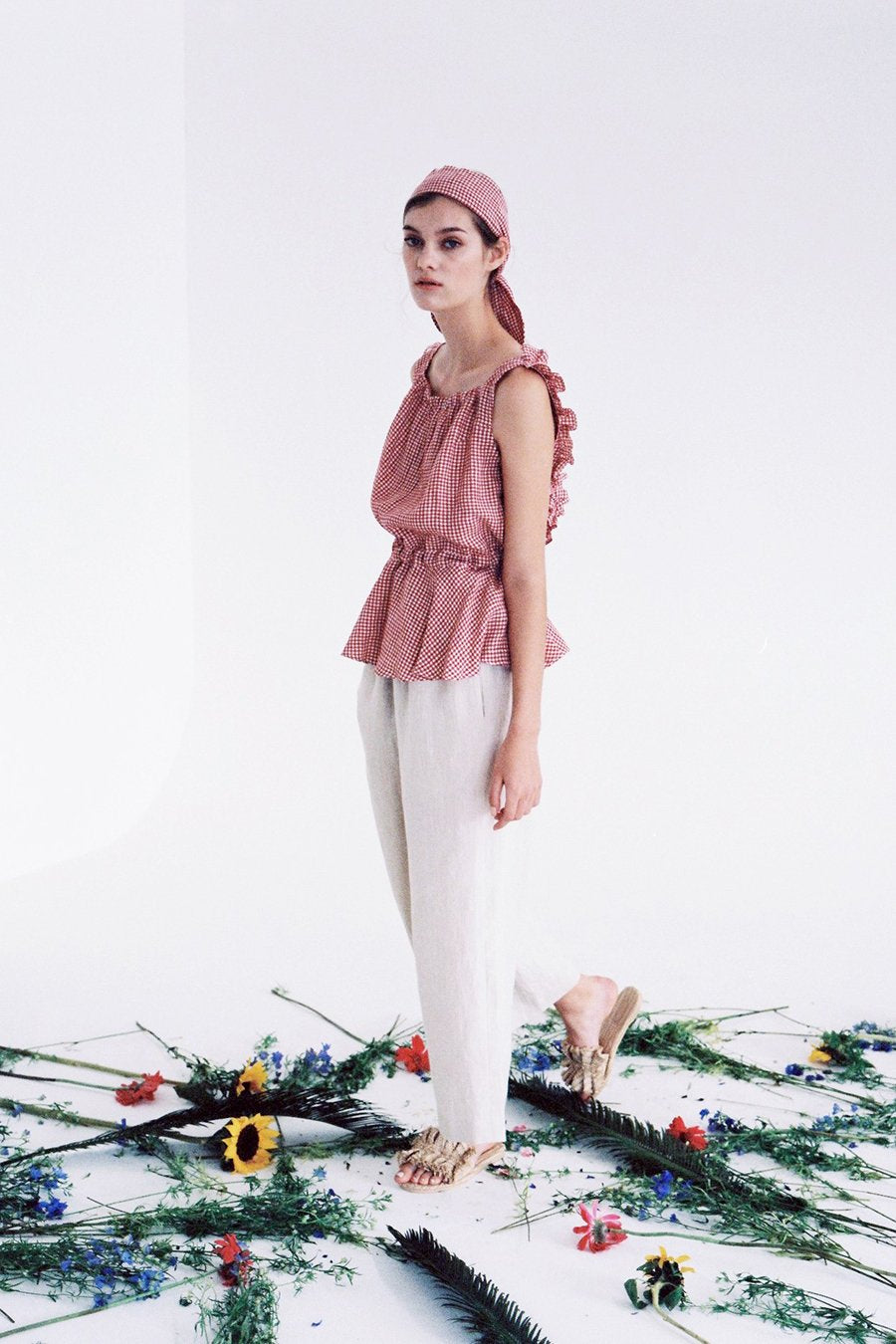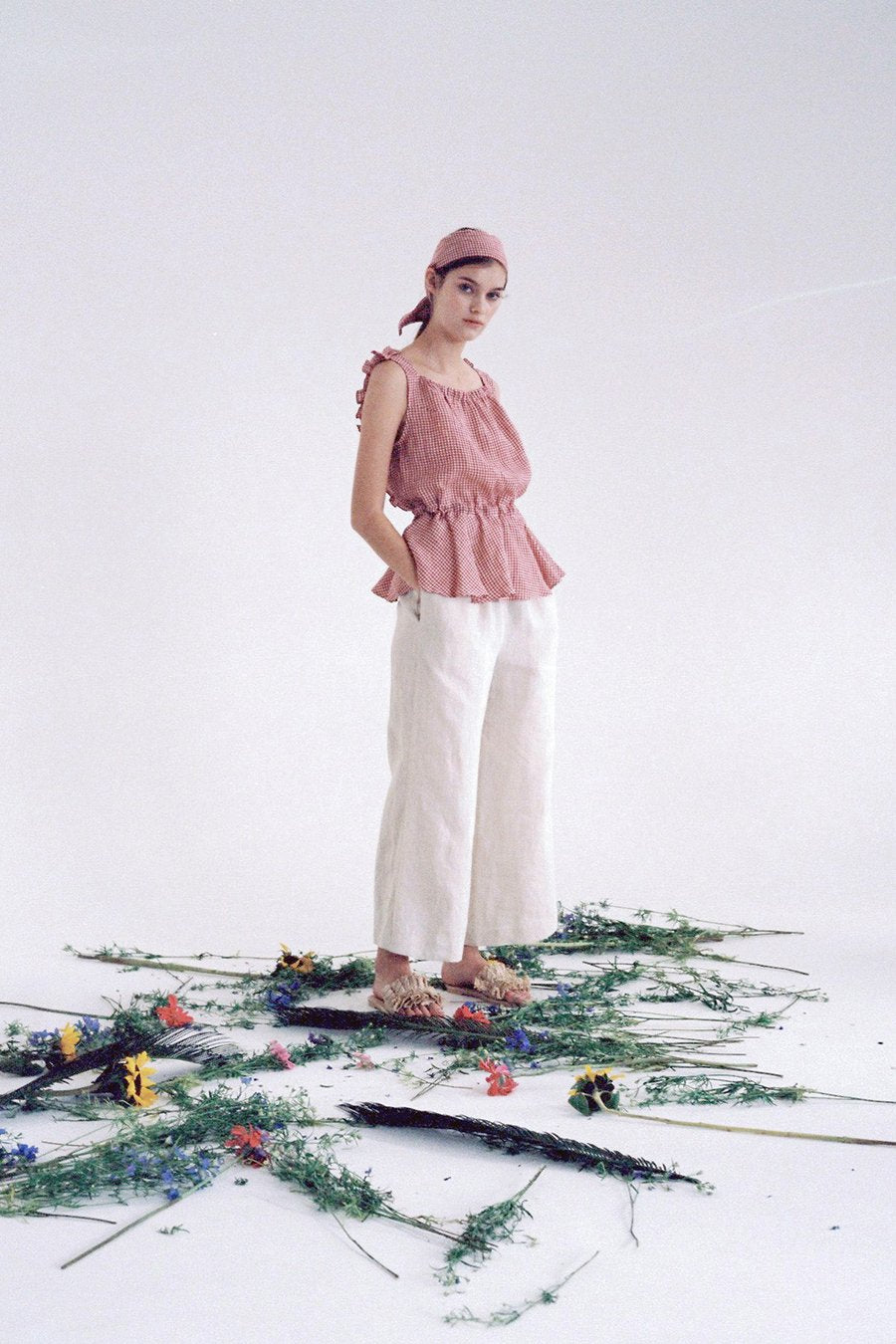 The Laura Ren gingham linen blouse captures summer femininity with a playful twist. Featuring an elasticated peplum waist and shoulder-tie straps, the top boasts a romantic silhouette with soft volume. The standout deep V-back design is finished with a delicate ruffle trim and ribbon tie detail, balancing charm with sensuality. Crafted in breathable linen, this piece is perfect for sunny escapes or al fresco weekends.