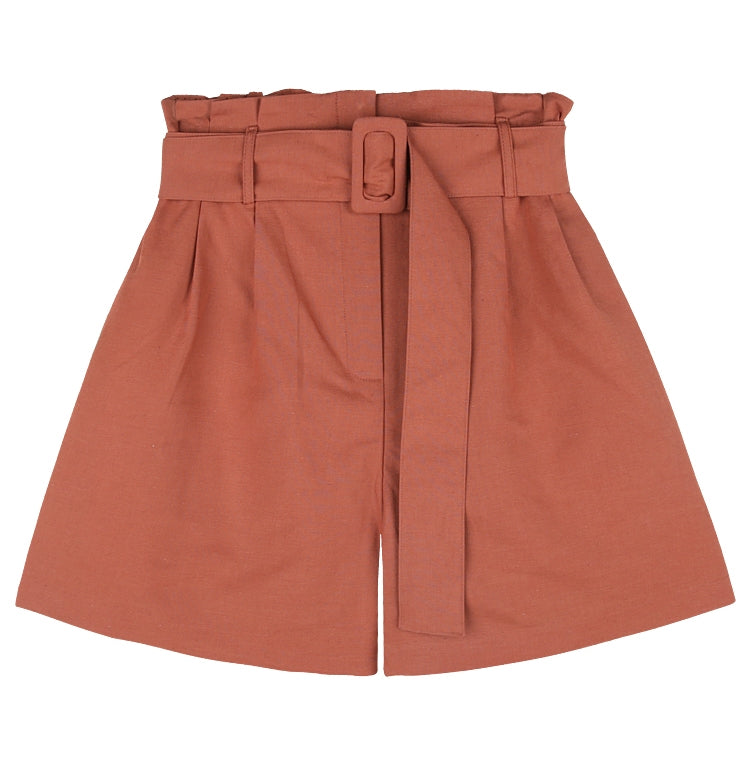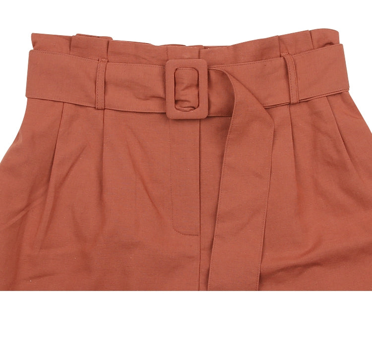 Laura Ren presents these refined high-rise linen shorts, tailored for contemporary sophistication. Designed with front pleats and a wide-leg cut, they feature a matching fabric belt with a covered buckle to cinch the waist elegantly. The breathable linen fabric ensures comfort and ease throughout the day, while the structured silhouette transitions effortlessly from casual to polished occasions. A wardrobe staple that delivers both form and function.