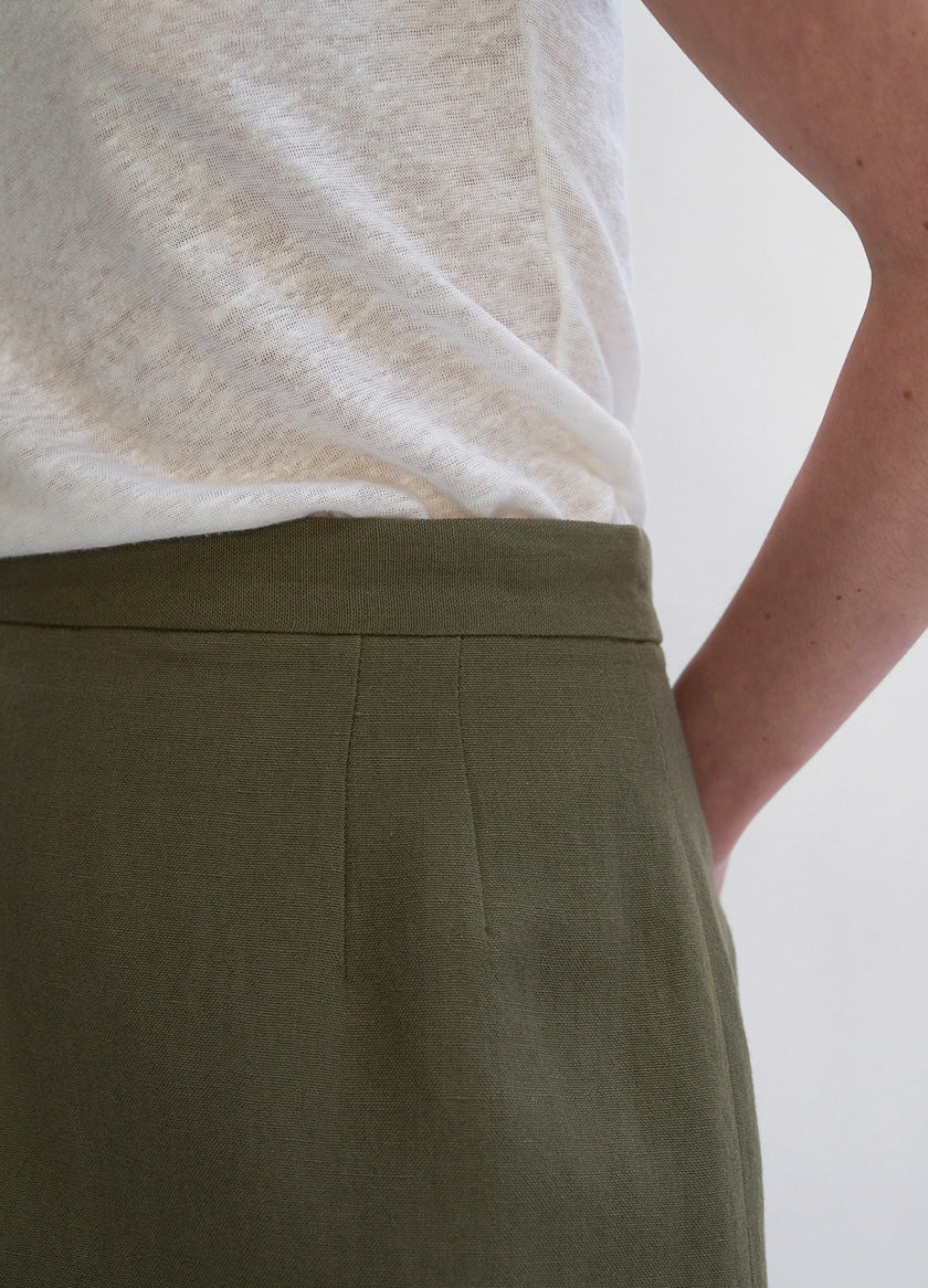 The Laura Ren high-waisted linen midi skirt is a refined wardrobe essential designed for effortless summer elegance. Crafted from breathable linen, this skirt features clean front paneling, minimal seam detailing, and a structured waistband that flatters the silhouette. Its midi length offers versatile wear from casual outings to sophisticated occasions, while the concealed back zipper ensures a smooth finish. Style it with a tucked-in tee or a sleeveless blouse for a chic, tailored look. A modern staple from Laura Ren, perfect for pairing with flats or sandals during warm days.