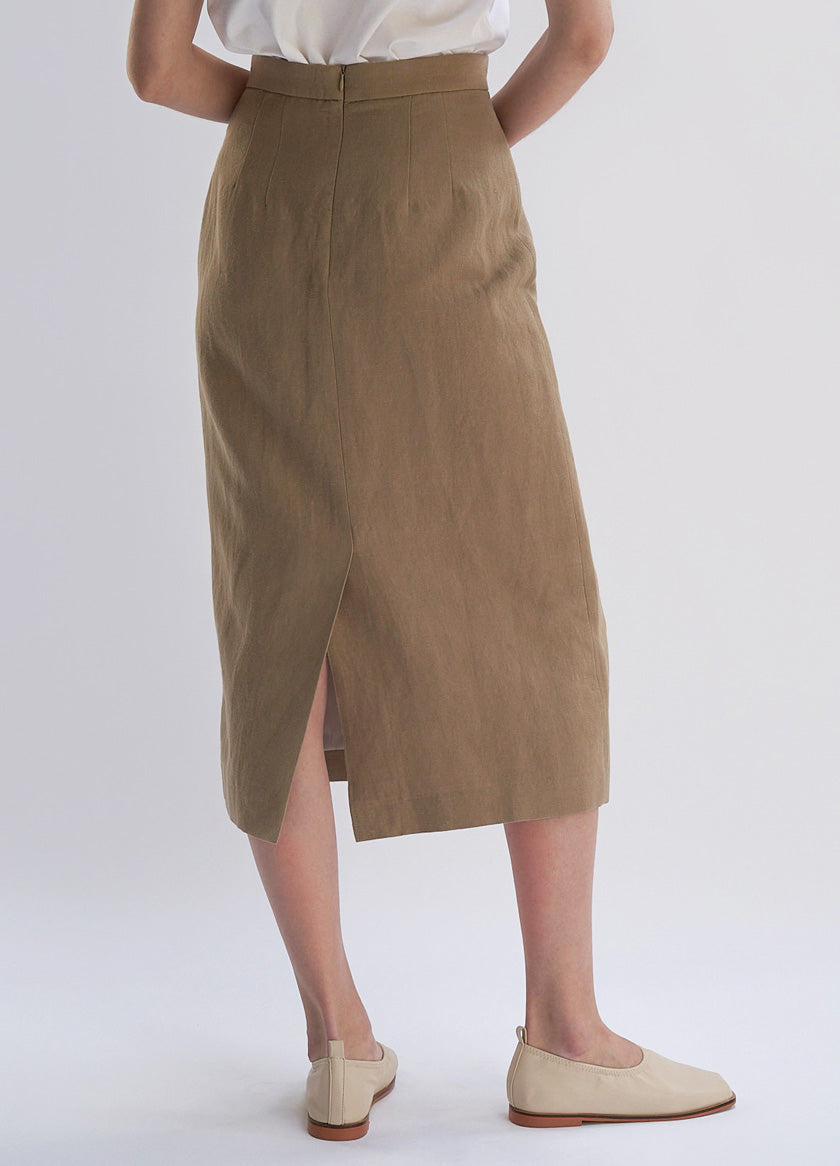 The Laura Ren linen midi skirt offers a refined silhouette with clean lines and timeless elegance. Crafted from breathable linen, this skirt features a high-rise waistband, structured darts, and a sleek midi length that elongates the form. The minimalist design is complemented by a discreet back slit for ease of movement, making it perfect for warm-weather dressing or elevated casual styling. Whether paired with a crisp blouse or a relaxed tank, this versatile piece delivers understated sophistication. Add the Laura Ren linen skirt to your wardrobe for a balance of comfort, craftsmanship, and effortless femininity.
