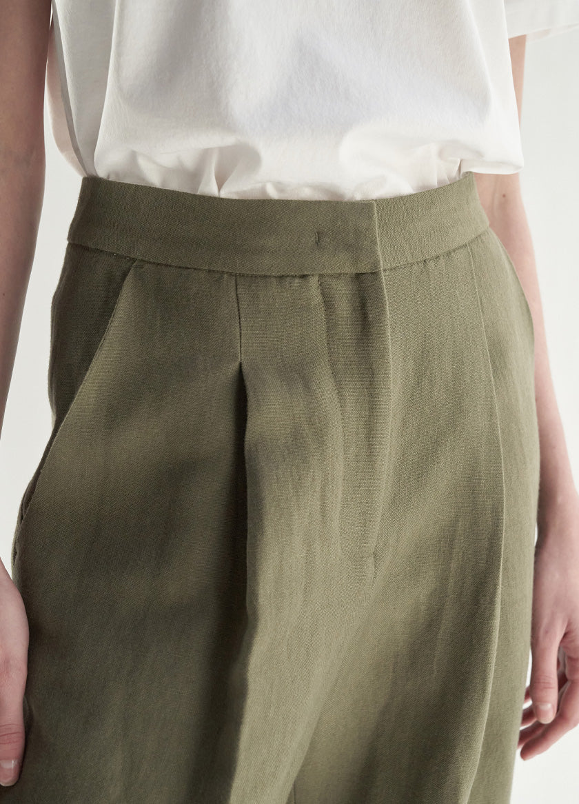 The Laura Ren linen pants offer a timeless silhouette with refined tailoring and breathable comfort. Crafted from high-quality linen, these tapered trousers feature a high-rise waistband, crisp front pleats, and side seam pockets—creating a structured yet relaxed fit perfect for warm-weather styling. Designed to sit elegantly at the ankle, they balance utility and sophistication for effortless day-to-evening transitions. Style them with a crisp cotton blouse or minimal tank top for a modern, streamlined ensemble. Laura Ren’s commitment to elevated essentials shines through every detail of these impeccably finished linen trousers.