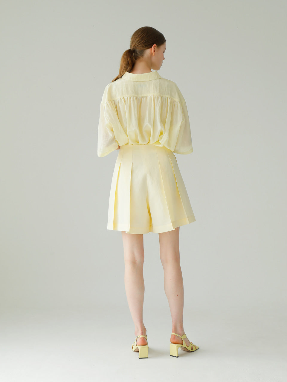 Laura Ren introduces a refined linen short skirt, crafted for elegant summer dressing. Made from breathable, high-quality linen, this piece features a flattering high-waisted cut and structured box pleats for volume and ease of movement. The tailored A-line silhouette offers a timeless fit that transitions seamlessly from day to evening. Whether styled with blouses or minimal tops, this skirt brings polished versatility to any capsule wardrobe. A warm-weather essential that combines comfort with understated sophistication.