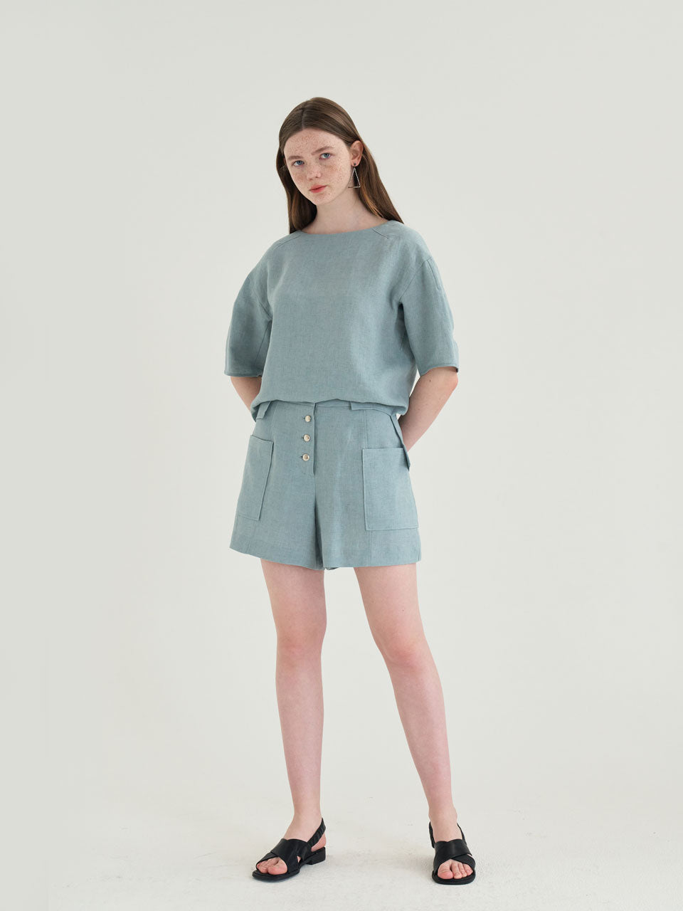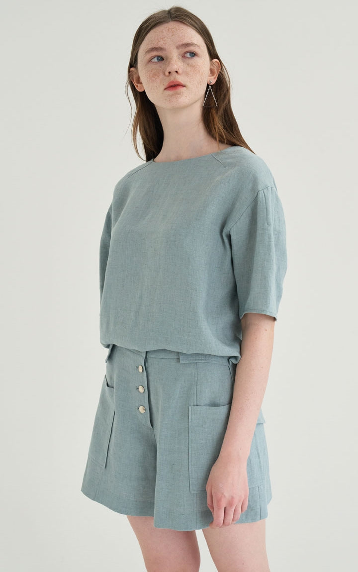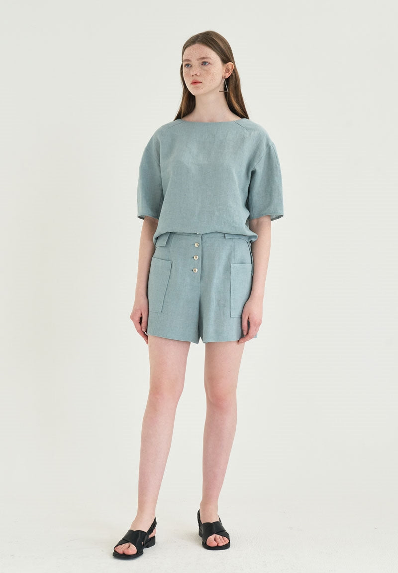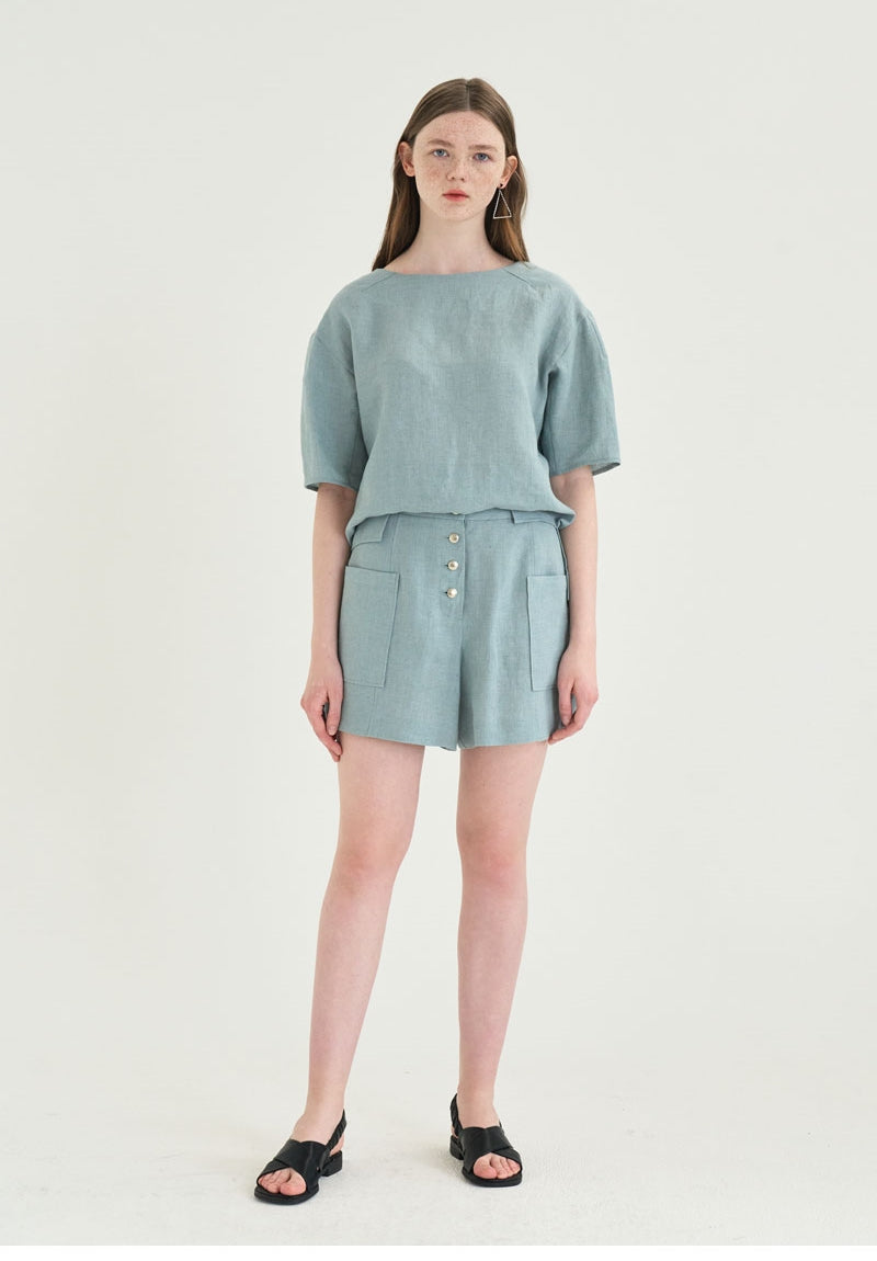 Stay effortlessly chic and cool in these high-waisted linen shorts from Laura Ren, designed for refined summer style. Made from breathable, lightweight linen, these shorts feature a flattering high-rise fit, wide legs, and bold front patch pockets for a modern utilitarian edge. The triple-button front detail adds a polished finish, while the tailored waistband ensures a clean, structured look. Whether you're pairing them with a relaxed linen blouse or a fitted tank, these versatile shorts from Laura Ren are a must-have staple for elevated warm-weather dressing.