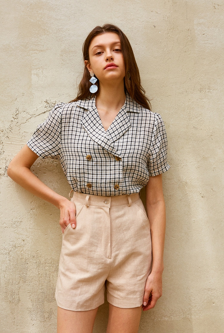 Elevate your warm-weather wardrobe with these high-waisted linen shorts from Laura Ren. Expertly tailored from breathable natural linen, these shorts offer a structured yet airy silhouette perfect for summer sophistication. The design features clean seams, discreet pockets, and a flattering high-rise waist that enhances both comfort and elegance. Whether styled with a classic blouse or a relaxed tee, these linen shorts embody timeless versatility and refined casual luxury. A must-have for curated minimalist dressing.