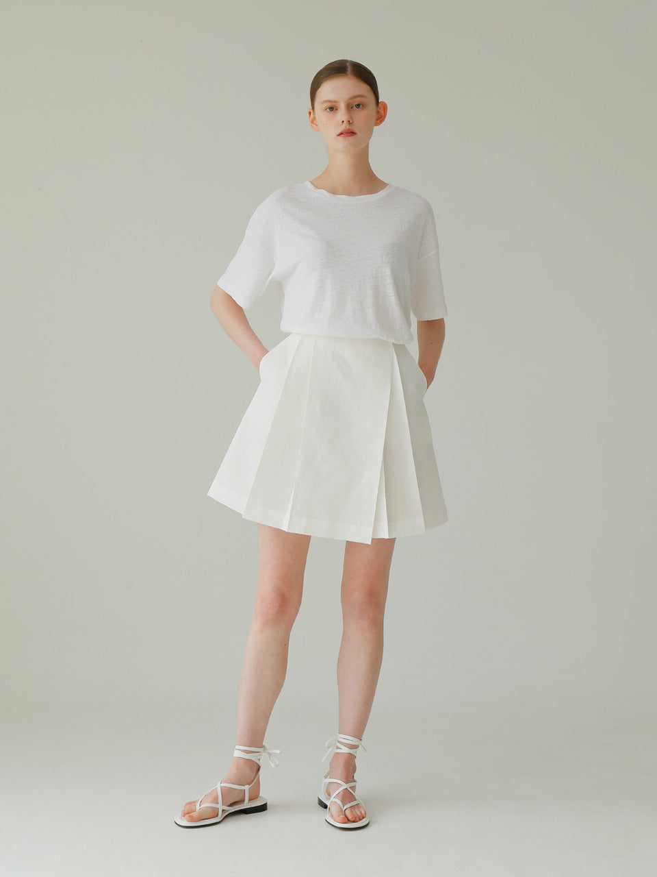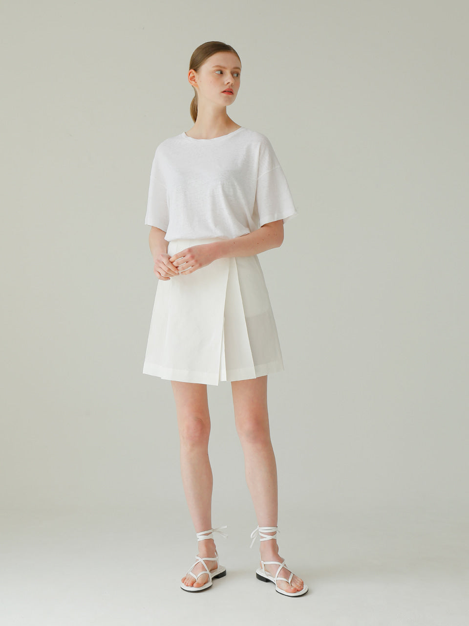 Laura Ren introduces this tailored linen shorts skirt that masterfully blends elegance and modern functionality. Designed with a high-waisted silhouette and featuring structured pleats, this piece delivers the refined appeal of a skirt with the comfort of shorts. A sleek wrap belt cinches the waist for a flattering fit, while the crisp linen fabric ensures breathability and a luxurious touch. Perfect for summer outings, formal occasions, or power looks in warm climates. Pair effortlessly with matching blazers or statement blouses for a polished ensemble.
