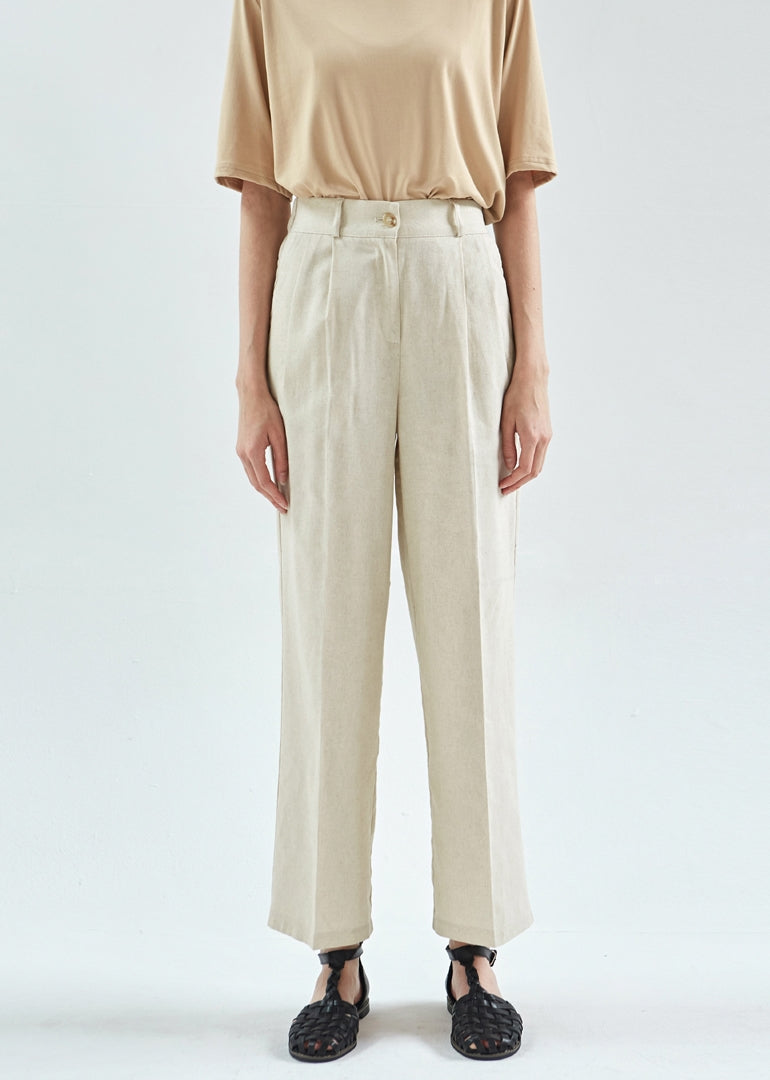 Elevate your everyday wardrobe with these high-waisted straight-leg linen pants by Laura Ren. Crafted from breathable, natural linen, these tailored trousers offer a refined silhouette with front pleat detailing and a sleek button closure. The elasticized back waistband ensures all-day comfort without compromising on elegance. Whether styled for a polished office look or relaxed weekend wear, these linen pants provide unmatched versatility, sophistication, and ease. Designed with clean lines and a structured fit, they embody timeless style and are ideal for warm-weather chic. A must-have staple for the discerning woman who values comfort, quality, and effortless fashion.