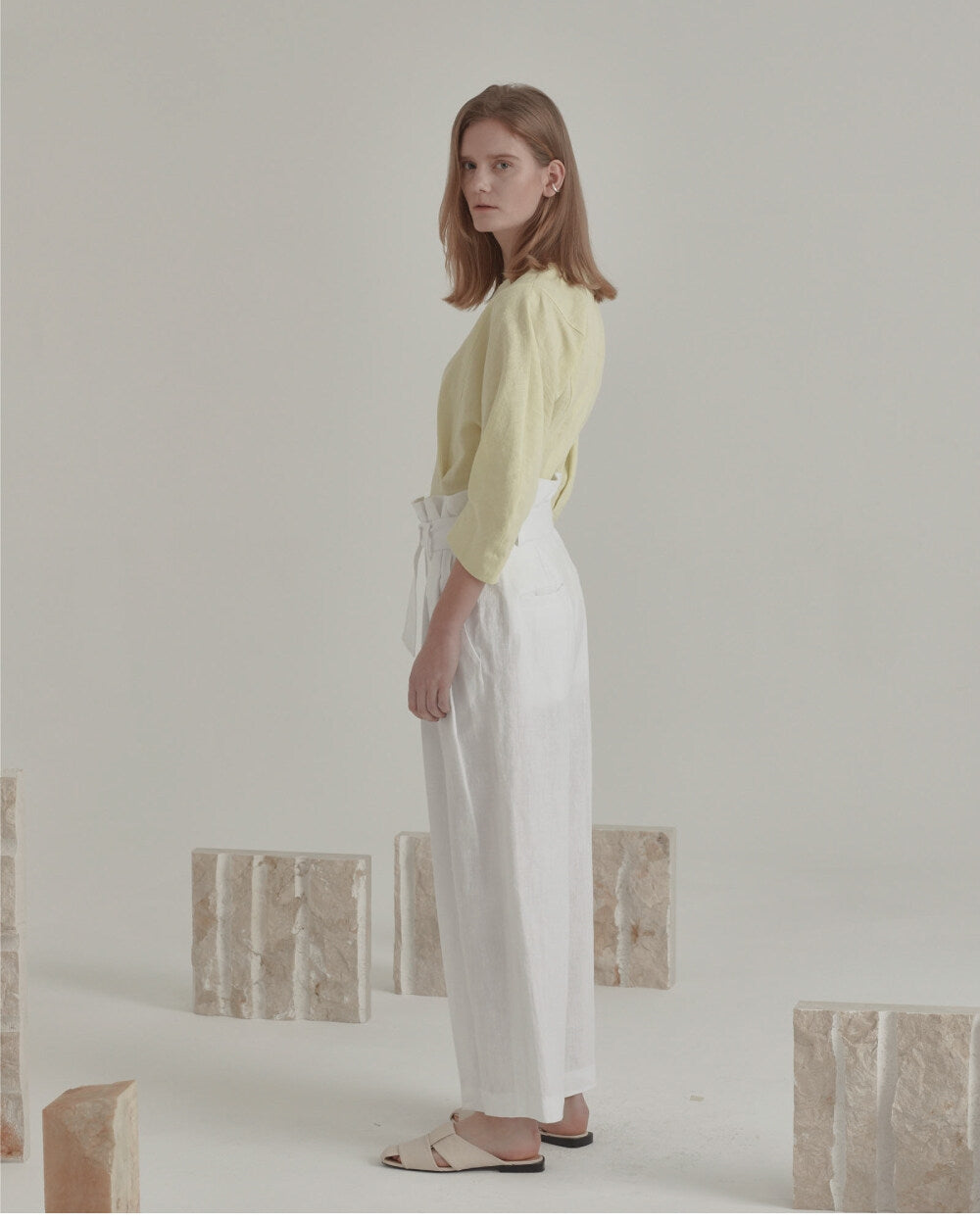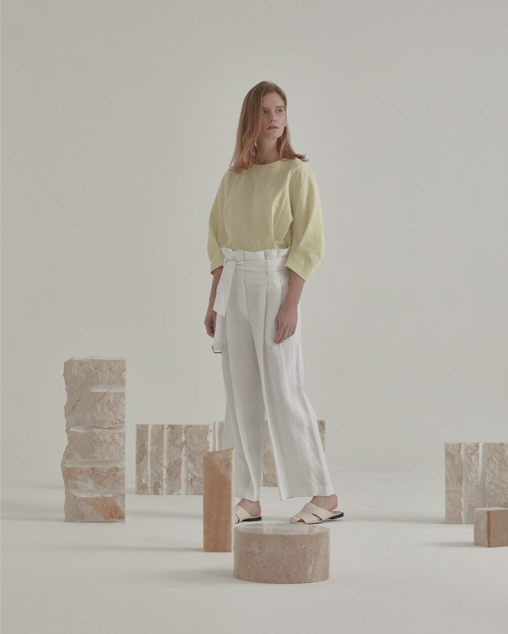 The linen pants from Laura Ren offer a refined take on effortless elegance with their wide-leg silhouette and sharply tailored waist. Crafted from breathable linen, they feature a belted high waist with pleat detailing that enhances the structured look while remaining lightweight and airy. Whether styled with a minimalist blouse or a statement top, these trousers bring clean lines and elevated proportions to your wardrobe. A signature piece for understated sophistication, made to move seamlessly from day to evening.