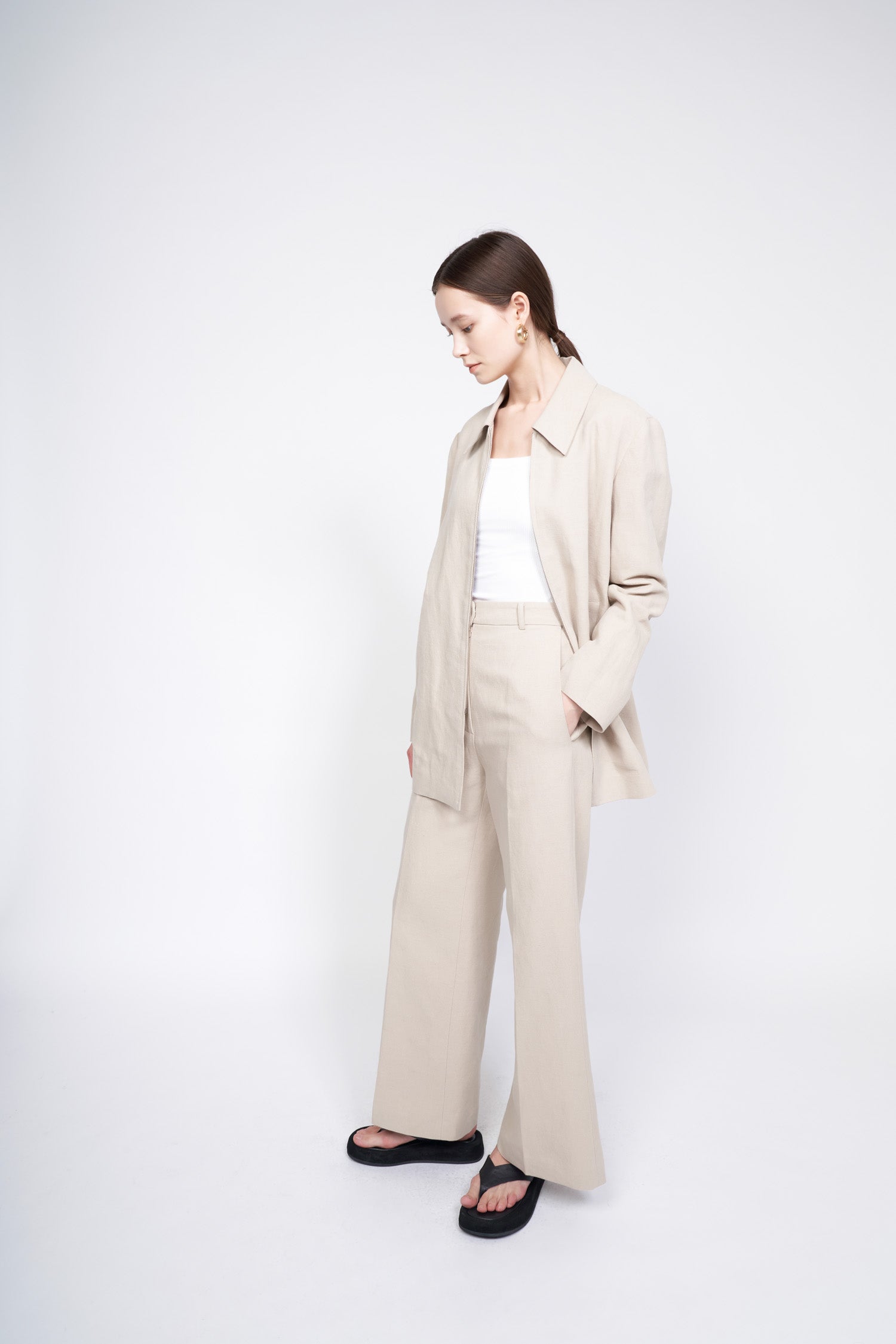 Elevate your everyday wardrobe with these high-waisted wide-leg linen pants from Laura Ren, crafted from a breathable linen blend ideal for warm-weather comfort. Designed with a clean tailored silhouette, these pants offer effortless elegance for work or casual days out. The natural drape of the linen fabric ensures fluid movement and a flattering shape. Functional side pockets and a structured waistband add both style and practicality. Perfectly paired with blazers or blouses, these linen trousers are a timeless addition to any refined wardrobe.