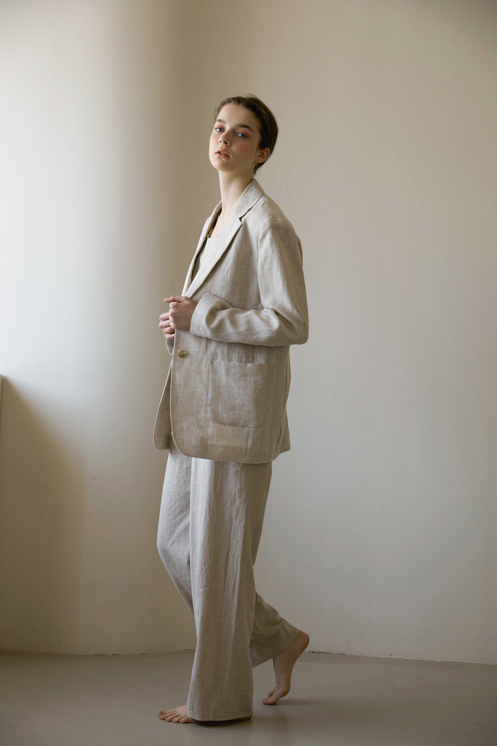 Designed for timeless versatility, these high-waisted wide-leg trousers from Laura Ren bring effortless sophistication to your warm-weather wardrobe. Crafted with a softly structured silhouette, the design features front pleats, sharp vertical seams, and subtle creasing to elongate the leg. The relaxed fit and full-length cut create an elongated profile, perfect for pairing with matching tops or relaxed tailoring. Hidden zip closure and practical side pockets complete the look with everyday ease. Whether worn alone or styled with coordinating pieces, these trousers embody the elegant minimalism central to Laura Ren’s signature aesthetic.