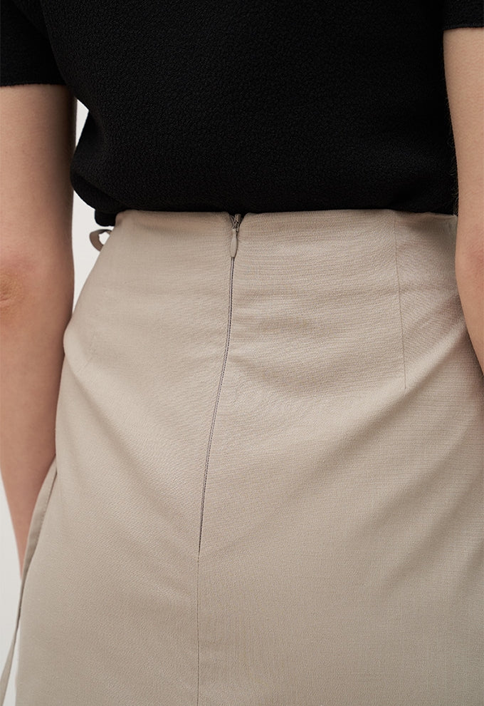 Elevate your warm-weather wardrobe with this refined linen blend midi skirt from Laura Ren. Featuring a high-rise waist and an elegant wrap front overlay, this skirt combines minimalist design with premium natural fibers for breathable, all-day comfort. The back vent ensures ease of movement, while the midi length flatters a wide range of silhouettes. Perfect for pairing with cotton knits or blouses, this piece transitions effortlessly from workwear to weekend chic. Designed with a concealed side zip for a smooth fit, this tailored skirt exemplifies Laura Ren’s commitment to timeless, elevated essentials. Ideal for modern women seeking quality, versatility, and effortless sophistication in their wardrobe.