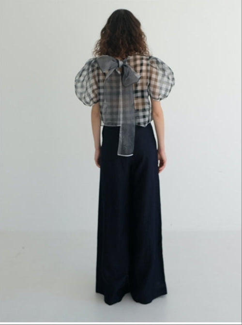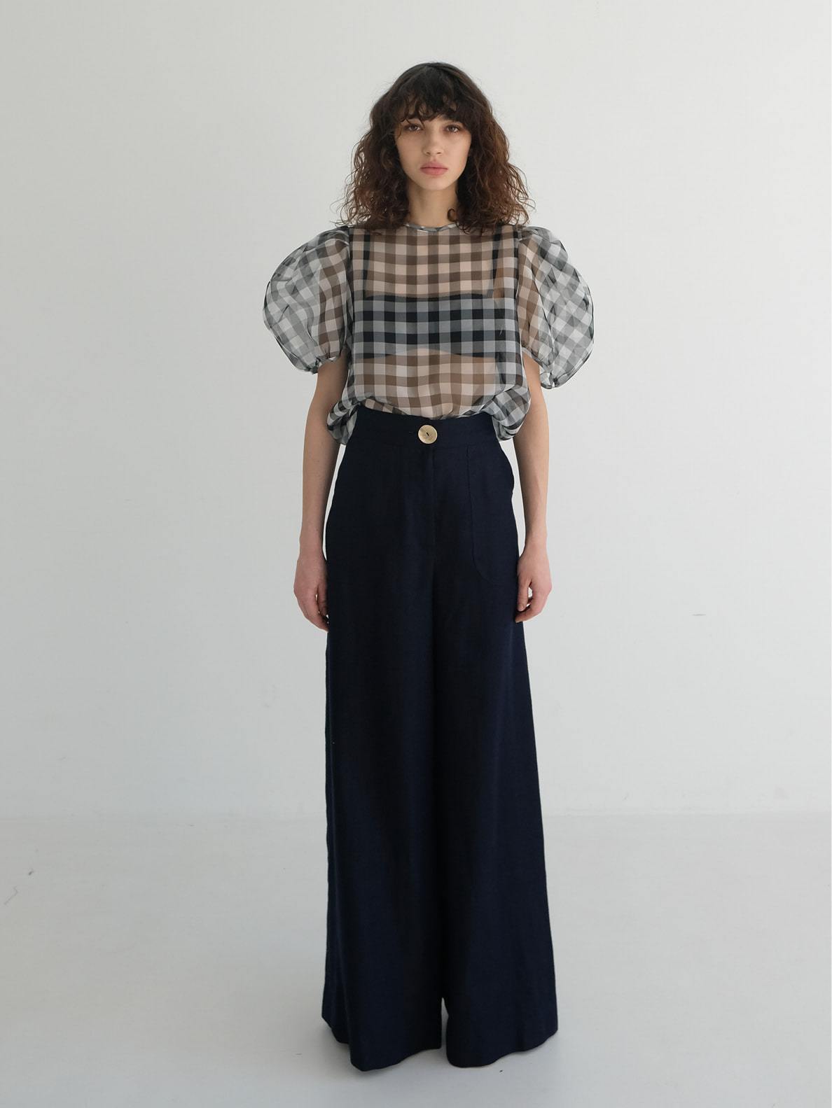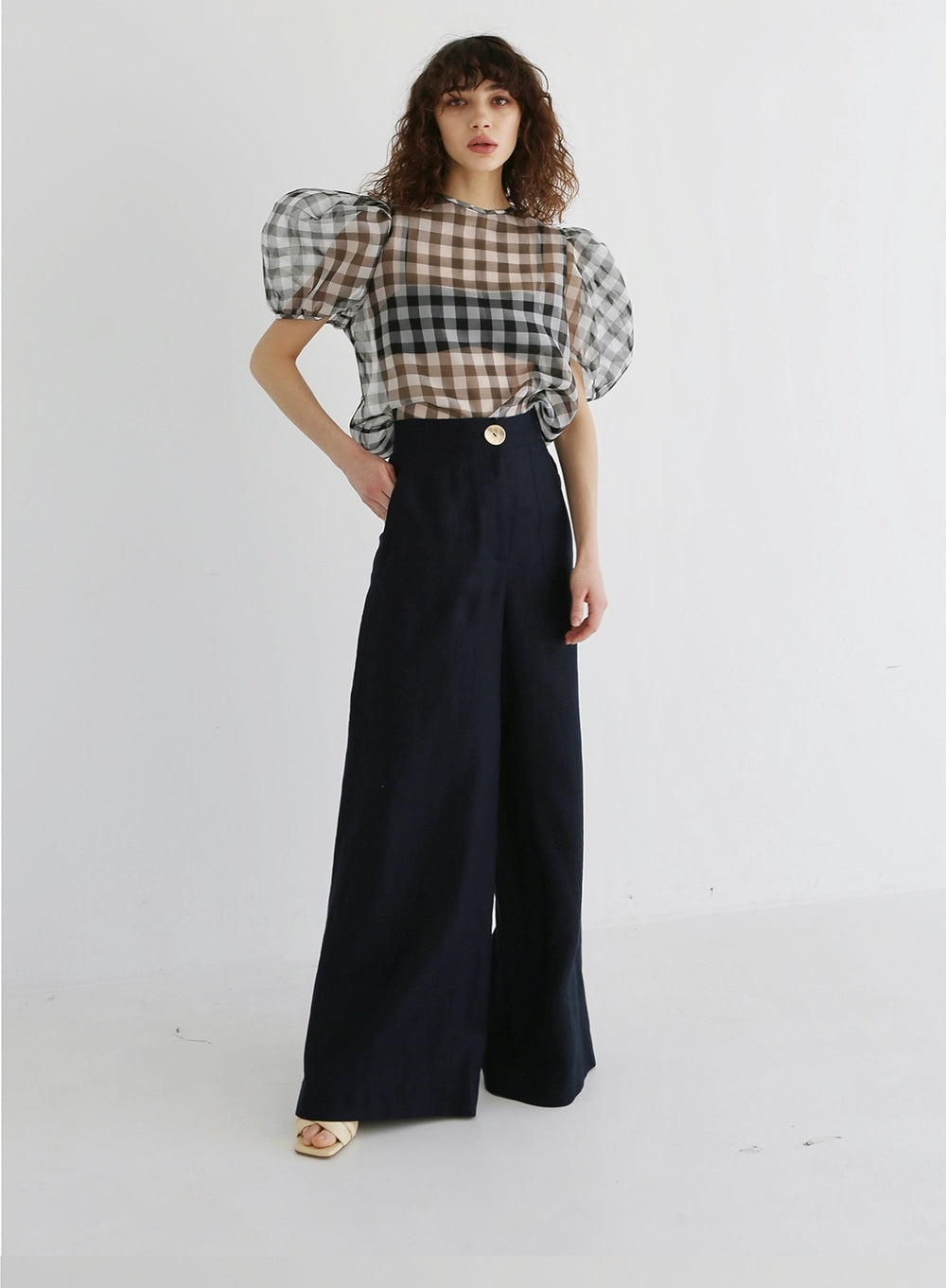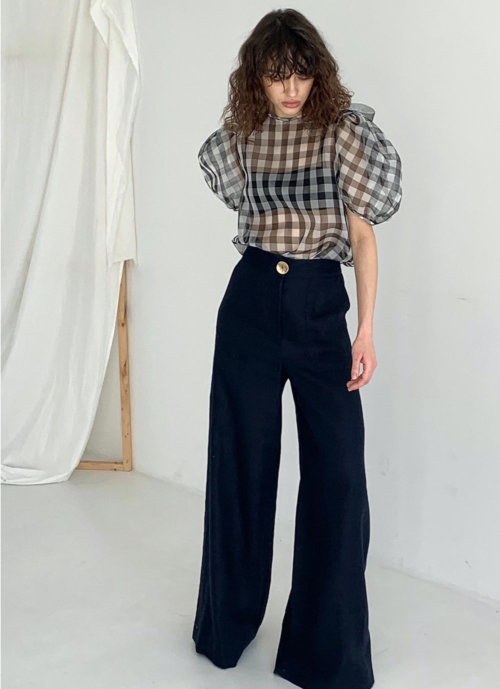 The Laura Ren linen blouse merges classic tailoring with contemporary charm, featuring voluminous puff sleeves and a semi-sheer plaid overlay that adds architectural elegance. This modern statement piece is crafted from breathable linen, offering structure without sacrificing comfort. Ideal for refined daywear or elevated workwear, the blouse is designed to pair effortlessly with tailored pants or high-waisted skirts. With its exaggerated silhouette and intricate plaid composition, the blouse embodies the Laura Ren signature of timeless femininity with an edge. A standout essential that translates across seasons and occasions.