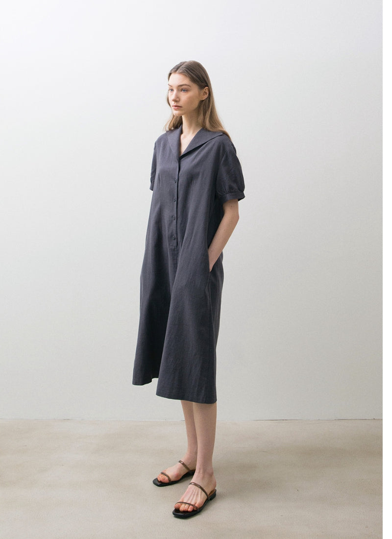 Designed for refined ease, this linen midi dress from Laura Ren offers effortless sophistication with everyday comfort. Crafted from breathable natural linen, it features a wide sailor-inspired collar, puff short sleeves with gentle gathering, and a relaxed A-line fit that drapes beautifully. The button-down front adds timeless structure, while discreet side pockets offer functionality. Whether styled with sandals for weekend outings or dressed up with heels, this Laura Ren design embodies versatile minimalism perfect for warm-weather dressing.