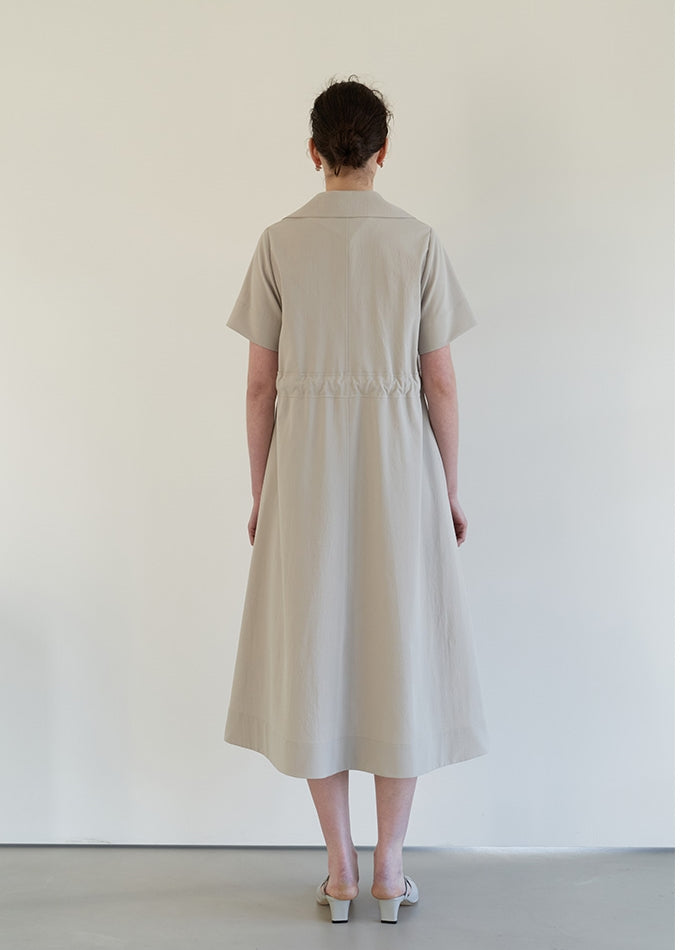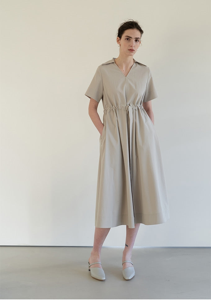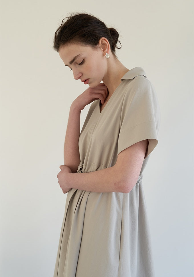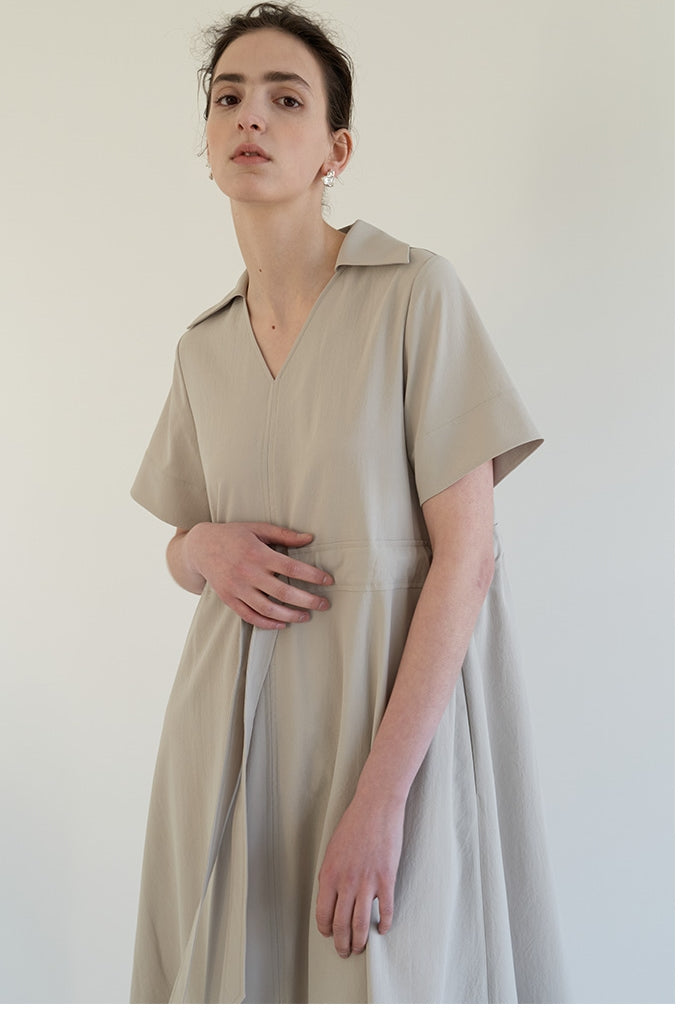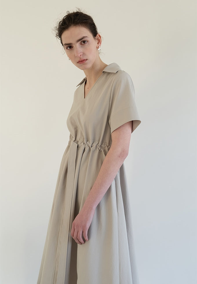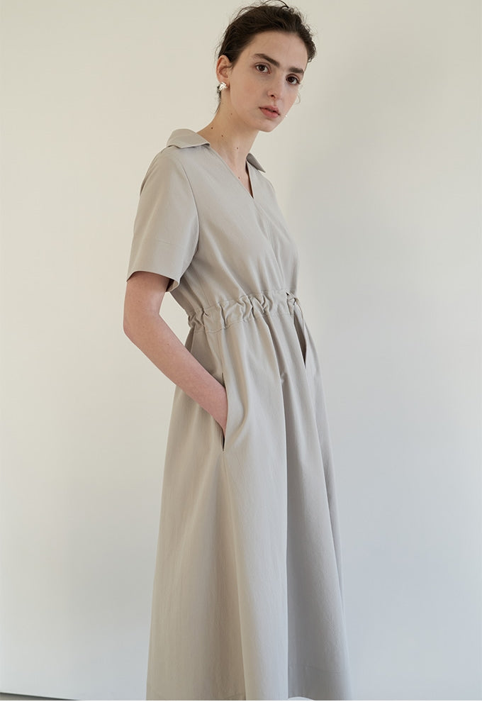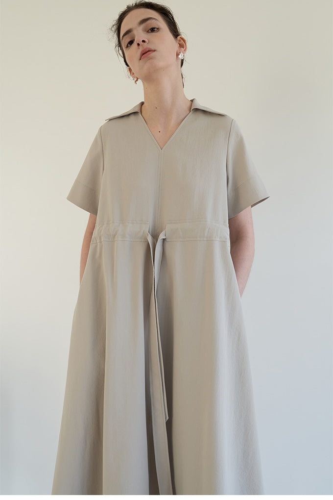 Minimalist yet refined, this V-neck midi dress by Laura Ren is crafted in lightweight linen to deliver breathable ease and understated elegance. The design features a relaxed collar, short sleeves, and an elasticated gathered waist that cinches gently for a flattering fit. With a self-tie detail and softly flared skirt, it offers both structure and movement. The midi length adds versatility, making it ideal for everyday sophistication, casual meetings, or resort-ready styling. An effortless piece that embodies natural grace and thoughtful tailoring.