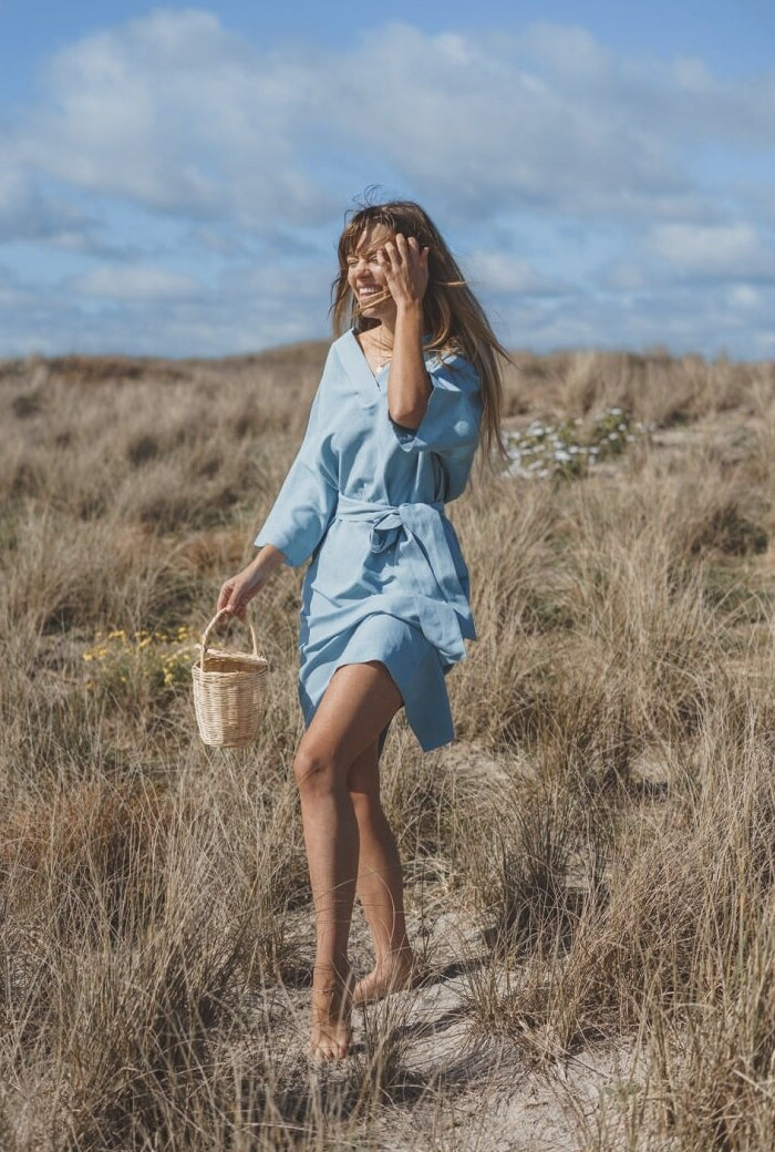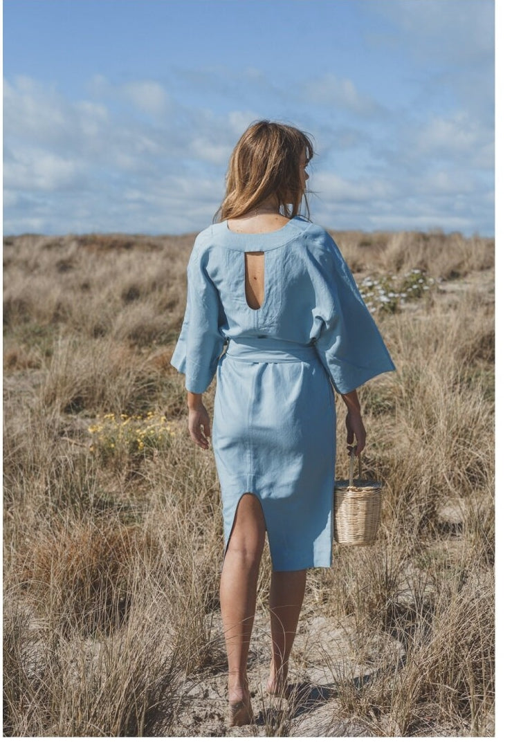 Laura Ren introduces a timeless wardrobe essential with this beautifully tailored linen midi dress. Crafted from breathable natural linen, it features a soft wrap-effect V-neckline, a flattering wide sash belt, and a striking back cut-out detail for modern allure. The relaxed 3/4 sleeves and back slit enhance movement and comfort, making it perfect for sun-drenched getaways or chic daytime outings. This elegant piece effortlessly combines sophistication with everyday ease.