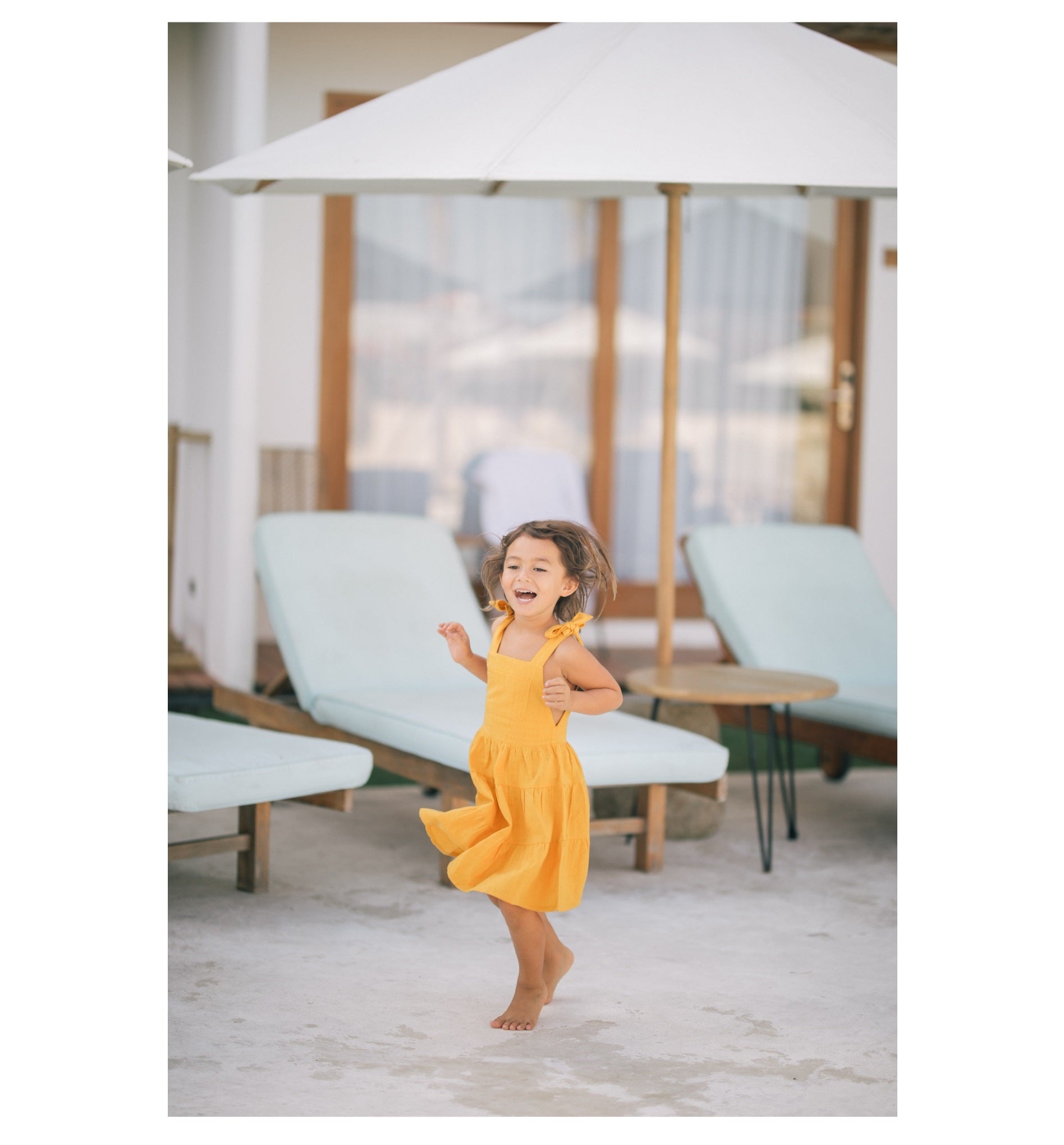 Laura Ren presents a charming linen sundress crafted for carefree summer days and joyful moments. Made from breathable and lightweight premium linen, this sleeveless dress features a square neckline, tiered skirt, and adjustable tie straps at the shoulders for a playful yet refined look. The relaxed silhouette ensures comfort, while the design adds a cheerful touch to any child’s wardrobe — perfect for vacations, beach outings, or sunny-day strolls.