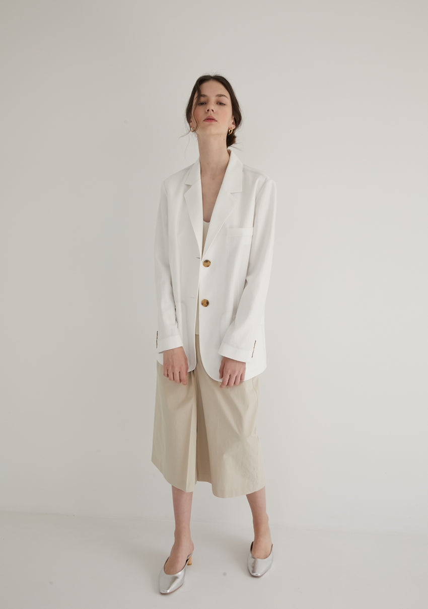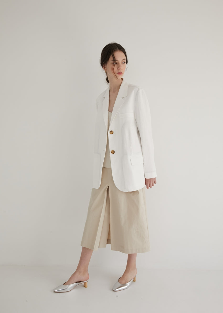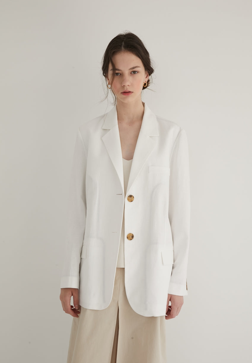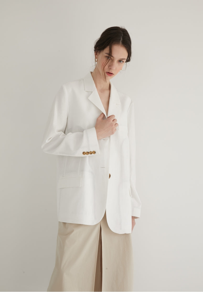 This long-sleeve linen blazer from Laura Ren offers a polished, lightweight layer perfect for spring and summer styling. Made from breathable linen, it features classic notch lapels, a front button closure, and flap pockets for a timeless tailored finish. The clean lines and neutral tone allow for easy pairing with both casual and refined outfits—from pleated skirts to tailored trousers. Ideal for both work and weekend wear, this linen blazer reflects Laura Ren’s commitment to modern elegance and versatile wardrobe essentials.