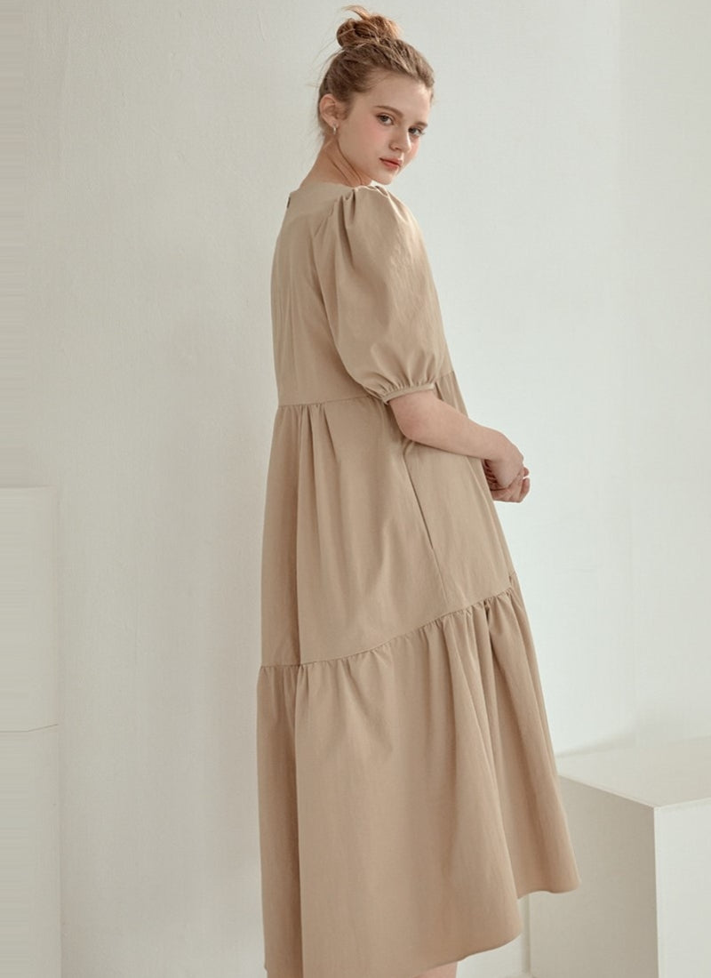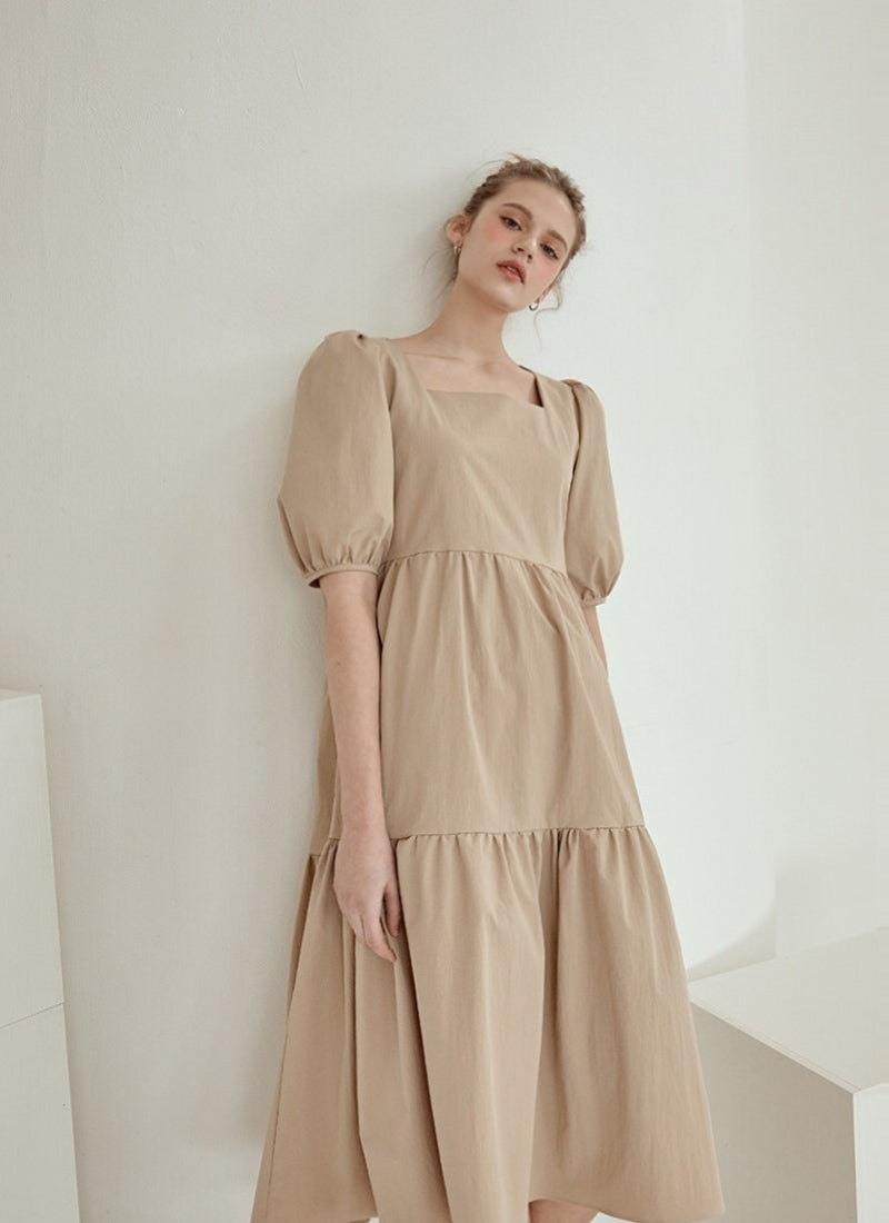 Discover effortless elegance with this puff sleeve cotton poplin midi dress by Laura Ren. Designed with a flattering square neckline and soft gathers, this dress features a high-low hem that adds graceful movement to every step. The breathable cotton poplin fabric ensures comfort and structure, making it ideal for both daytime sophistication and evening charm. Subtle tiers and delicate puff sleeves elevate its modern femininity. A wardrobe essential from Laura Ren, perfect for refined styling with minimal effort.