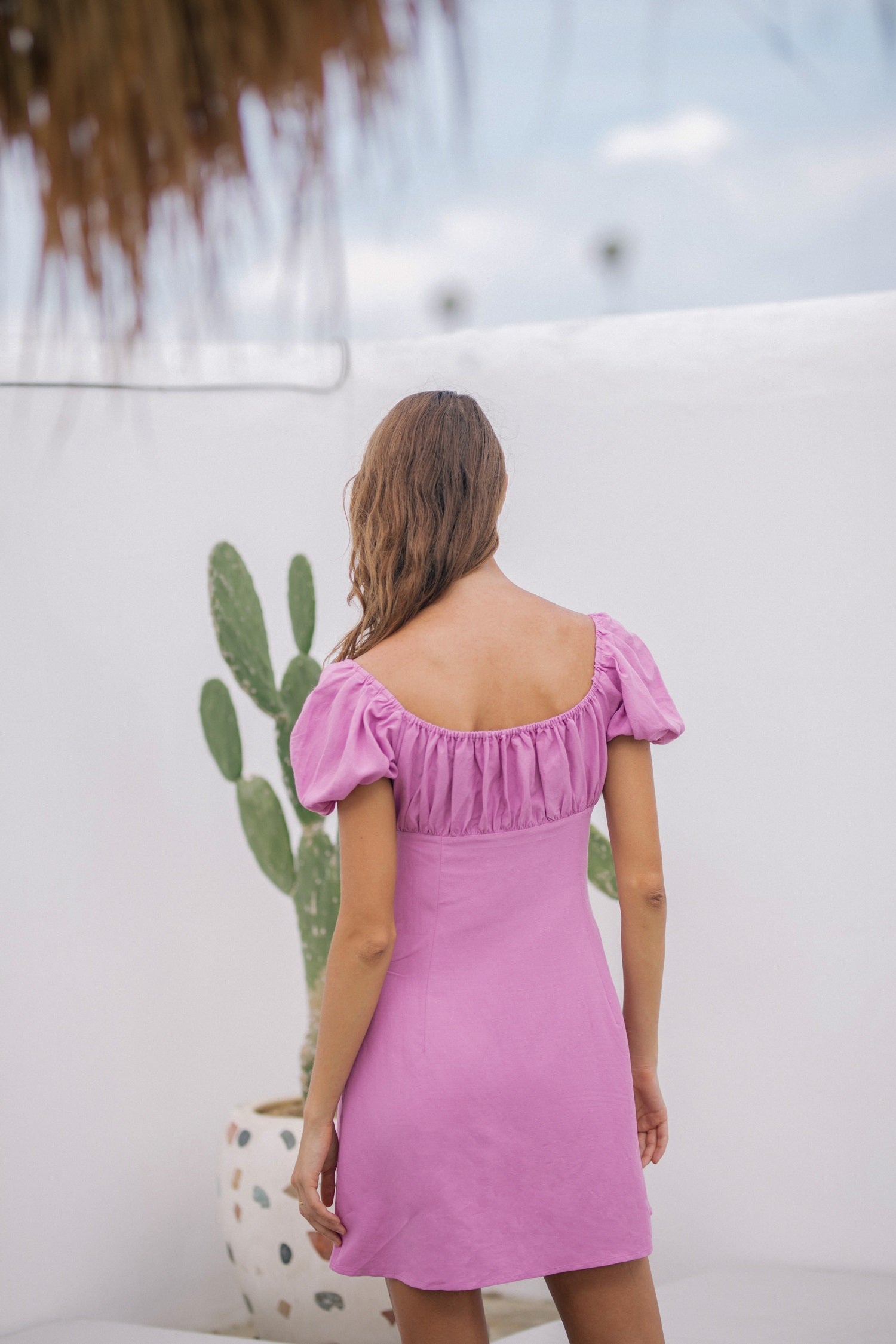 Laura Ren presents this exquisitely tailored puff sleeve mini dress, crafted from breathable premium linen for effortless summer elegance. Designed with a sweetheart neckline and ruched bust, it flatters the feminine form while offering all-day comfort. The soft puff sleeves add a romantic touch, perfect for sun-drenched strolls or café dates. Its fitted bodice and flared hemline create a timeless silhouette that transitions beautifully from day to evening. Pair it with a woven bag and straw hat for an instantly chic resort-ready look.