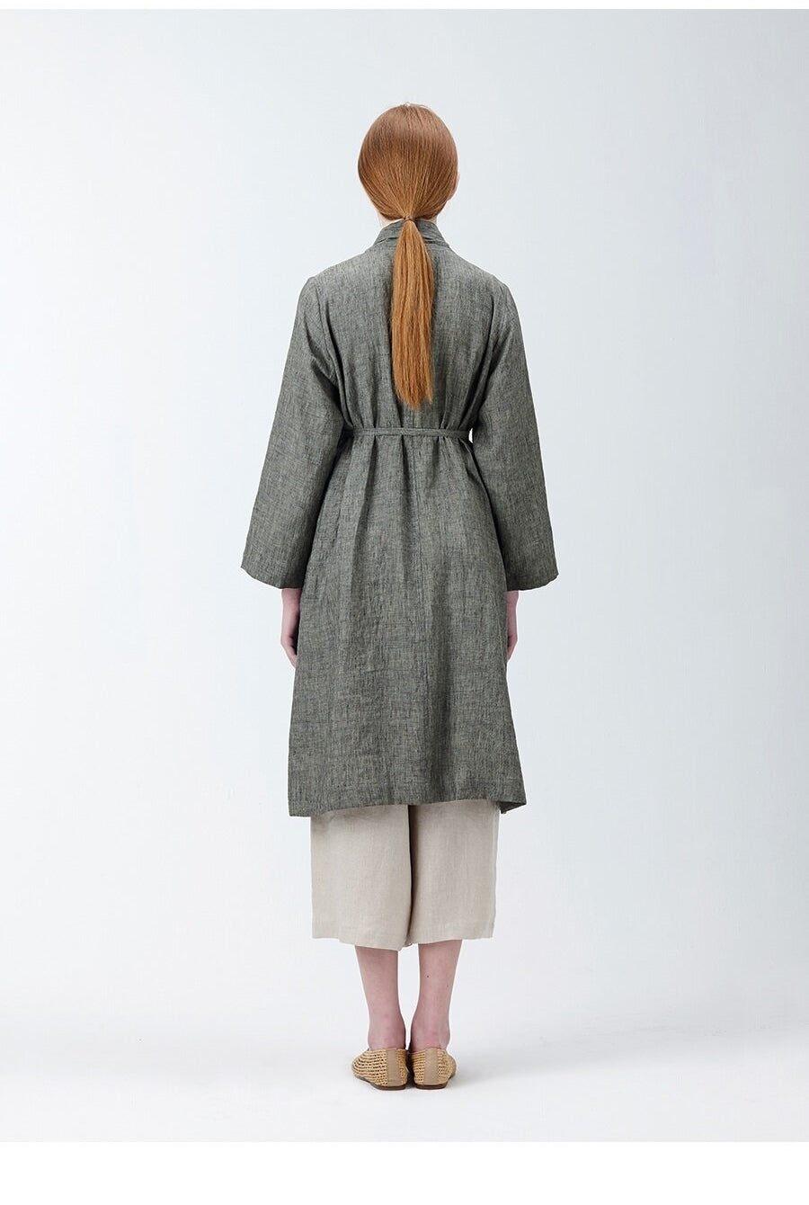 Elevate your wardrobe with this effortlessly elegant belted longline linen jacket by Laura Ren. Crafted from breathable, natural linen, this jacket offers a relaxed silhouette and open front, making it a versatile layering piece for transitional weather. Designed with a minimalist aesthetic, it features practical side pockets and a self-tie waist belt for a customized fit. The clean lines and understated design make it ideal for pairing with dresses, trousers, or skirts for a refined yet casual look. Whether styled for daily errands or a weekend escape, this lightweight linen jacket offers timeless sophistication with a modern edge. Perfect for warm-season layering.