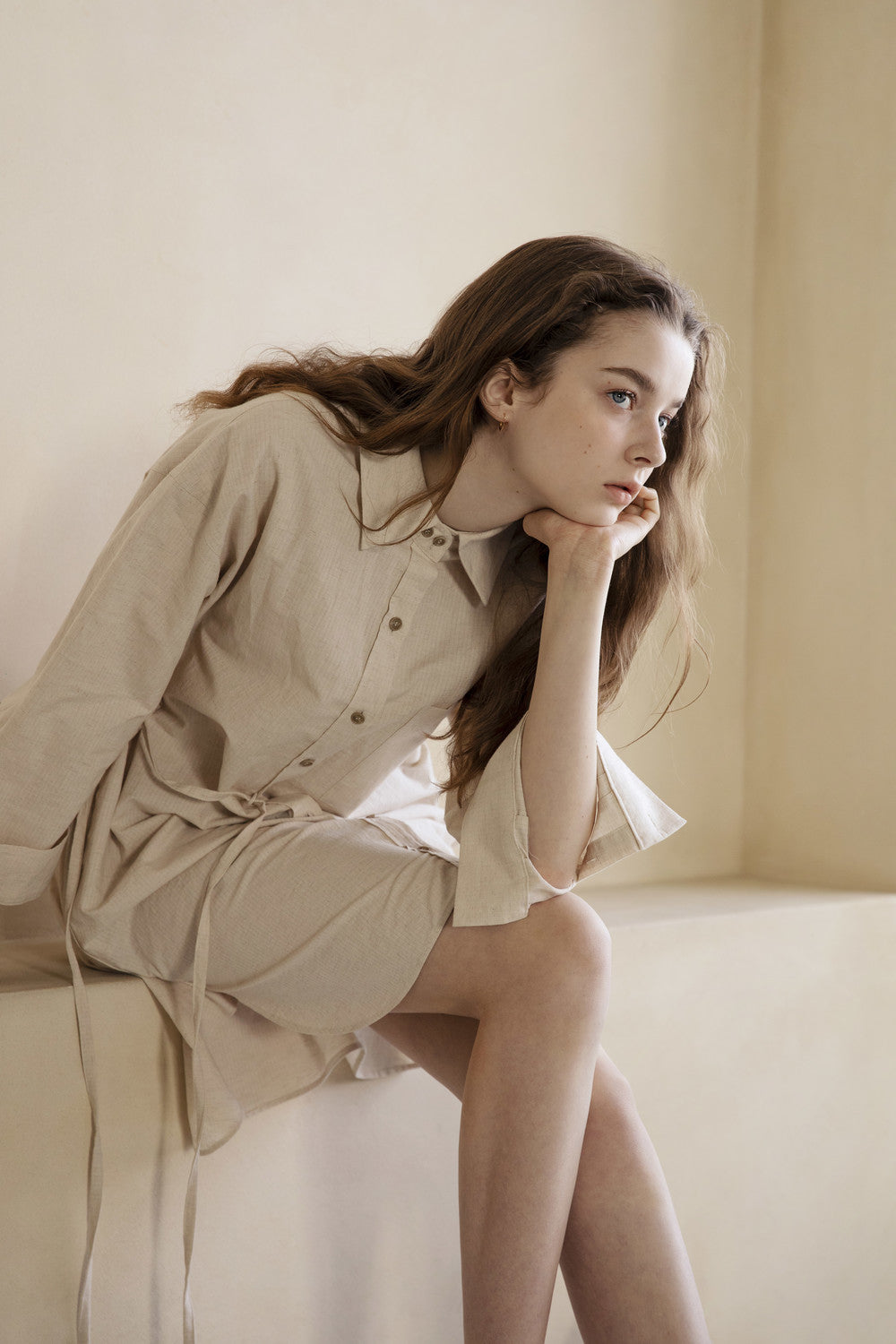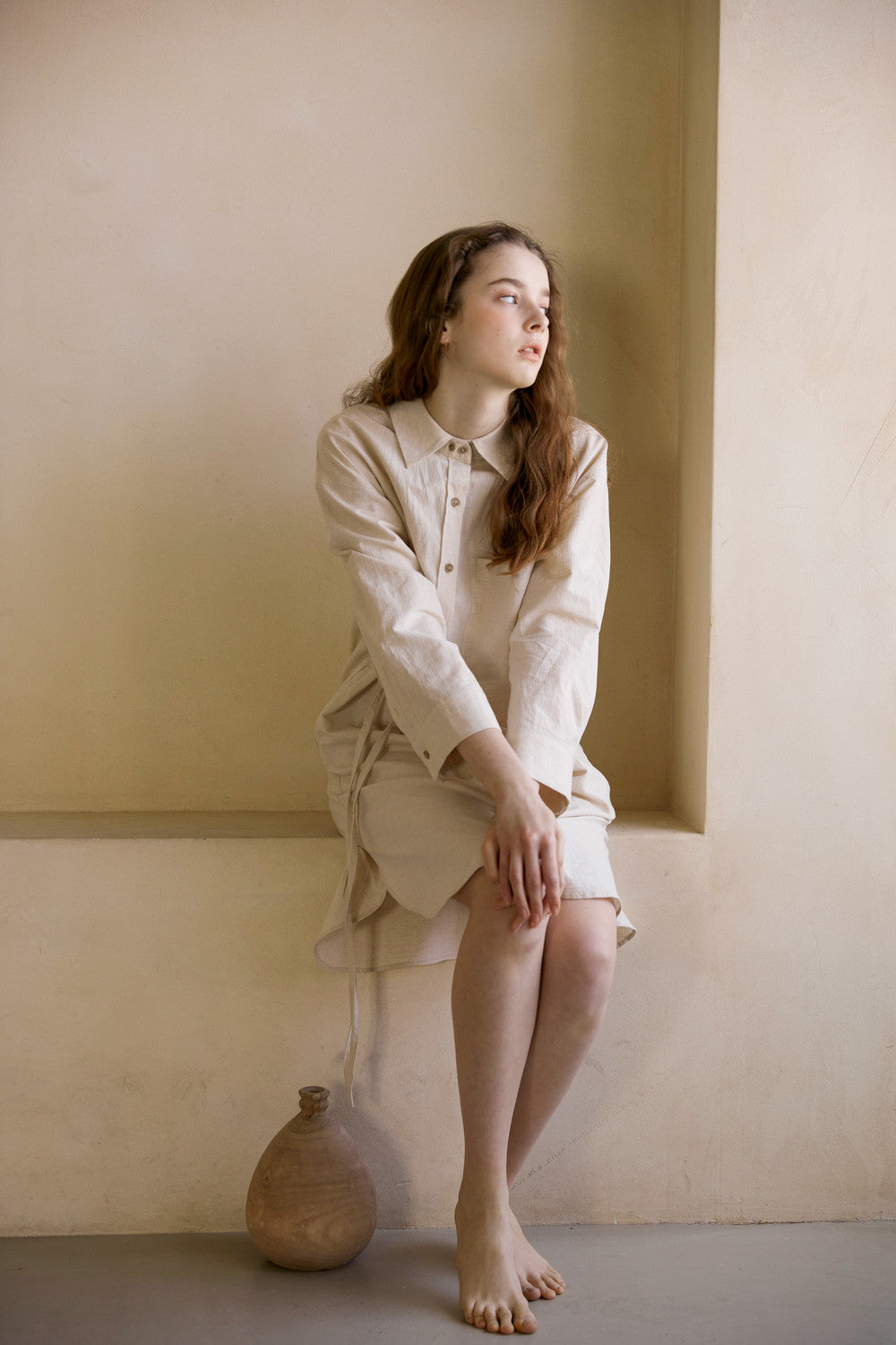 Elevate your everyday style with this effortlessly chic linen shirt dress from Laura Ren. Designed with a relaxed fit and crafted from breathable linen, this button-down dress features a classic collar, long sleeves, and a curved hem for an easy yet polished look. The adjustable side tie adds subtle definition at the waist, allowing for a customized silhouette. Perfect for warm days, travel, or minimalist wardrobes, this linen dress blends natural texture with timeless versatility. Laura Ren delivers refined simplicity in this essential piece designed for understated elegance.
