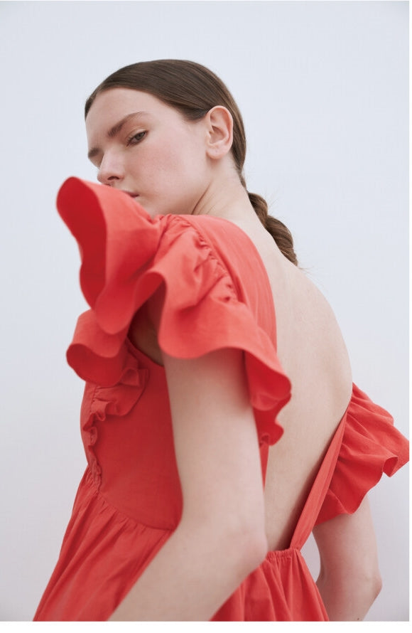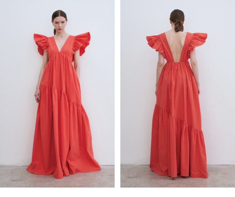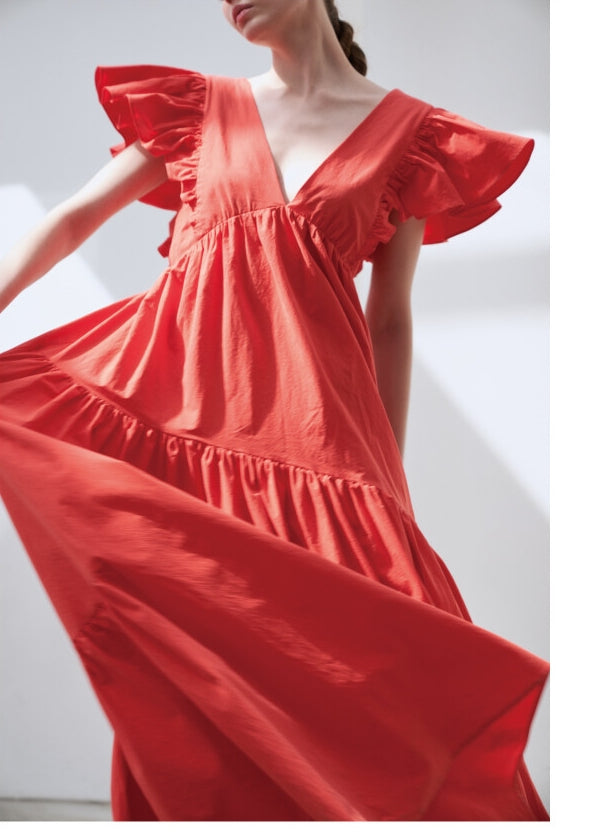 Laura Ren introduces a statement linen maxi dress designed for bold elegance and free-spirited movement. Featuring a plunging V-neckline and dramatic ruffled sleeves, this dress is crafted from lightweight linen for a breathable, fluid silhouette. The tiered, flowing skirt enhances the sense of effortless grace, perfect for sun-drenched days or evening soirées. Style it with strappy sandals or minimal heels to complete the look with ease.