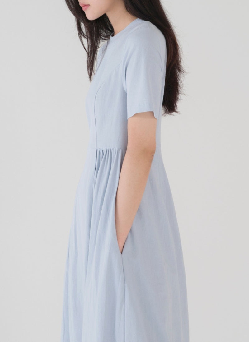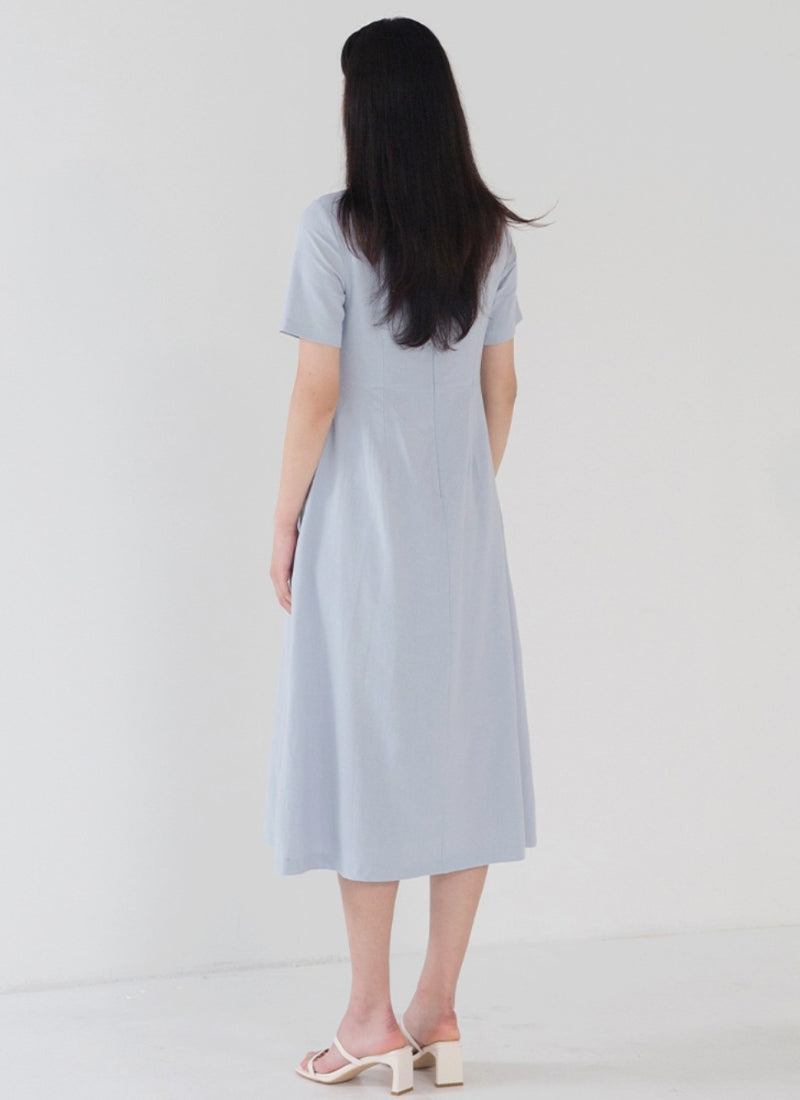 Experience effortless style with this short-sleeve linen midi dress by Laura Ren, designed for refined comfort and modern versatility. Crafted from high-quality breathable linen fabric, this piece features a gathered waist for a flattering silhouette and functional side pockets for practicality. The minimalist design makes it perfect for both casual outings and elevated occasions. Whether paired with sandals or heels, this dress delivers timeless appeal. Add a touch of understated luxury to your wardrobe with this essential piece by Laura Ren.