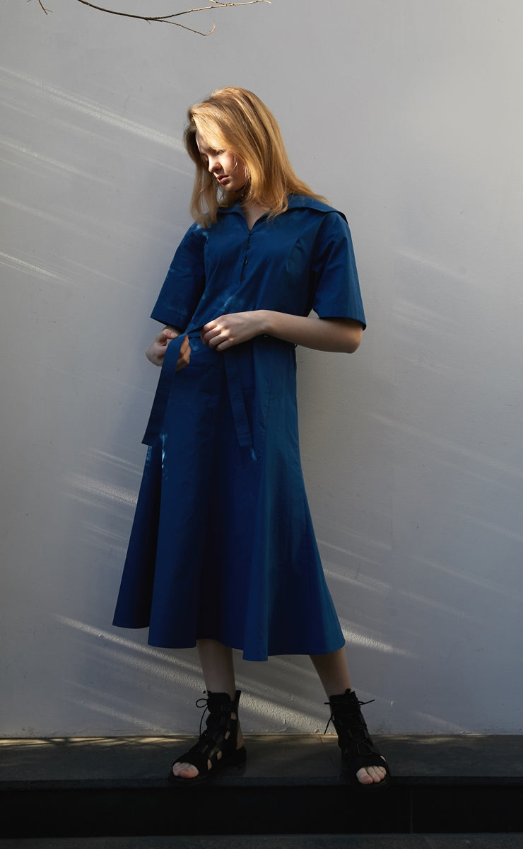 Timeless tailoring meets effortless grace in this short sleeve linen midi dress by Laura Ren. Made from high-quality breathable linen, this piece features a structured wide collar, partial button placket, and softly flared skirt that flows with every step. The matching belt defines the waistline for a flattering silhouette, while the clean lines and minimalist aesthetic elevate its sophistication. Whether styled for a day at the office or an outdoor gathering, this Laura Ren design is a refined wardrobe essential for modern women who value fabric quality, comfort, and elevated simplicity.