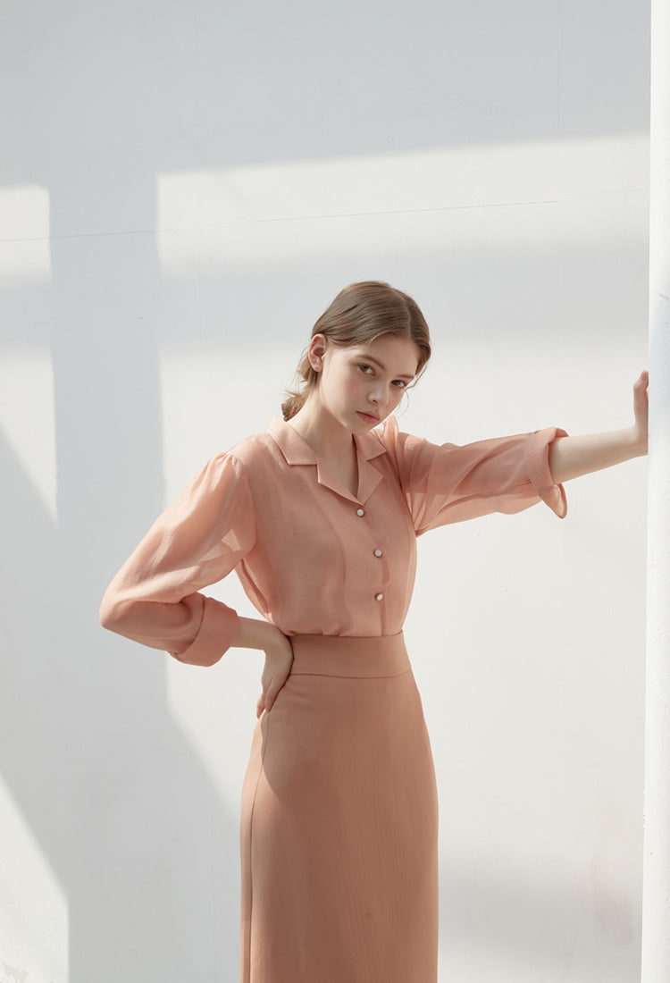 Refined and ethereal, this silk shirt from Laura Ren is crafted to elevate your everyday wardrobe with timeless grace. Made from high-quality silk, it features a soft drape, lapel collar, and delicate pearl-like buttons that add a touch of vintage charm. The semi-sheer texture offers a light, breathable feel while maintaining a polished silhouette. Ideal for styling with tailored pants or skirts, this versatile piece transitions seamlessly from office elegance to weekend ease. Laura Ren designs with the modern, confident woman in mind—where comfort meets elevated style.
