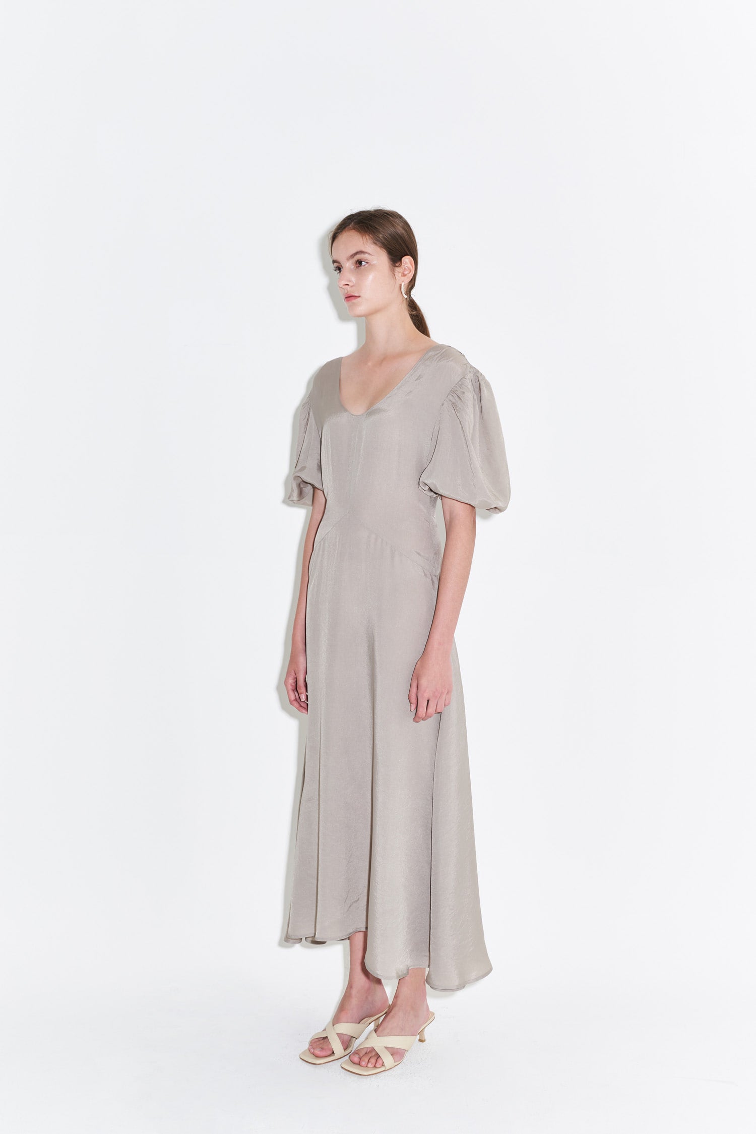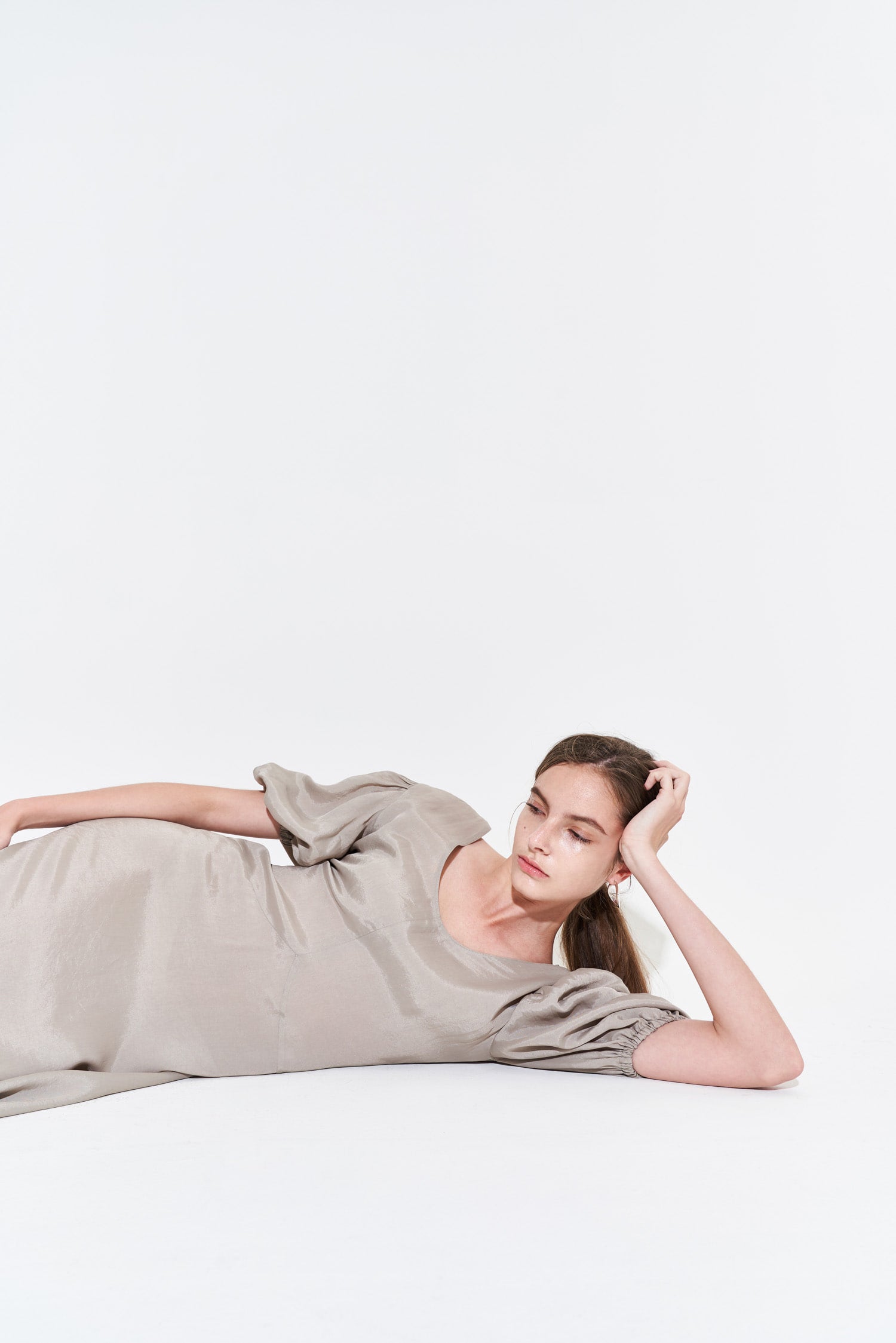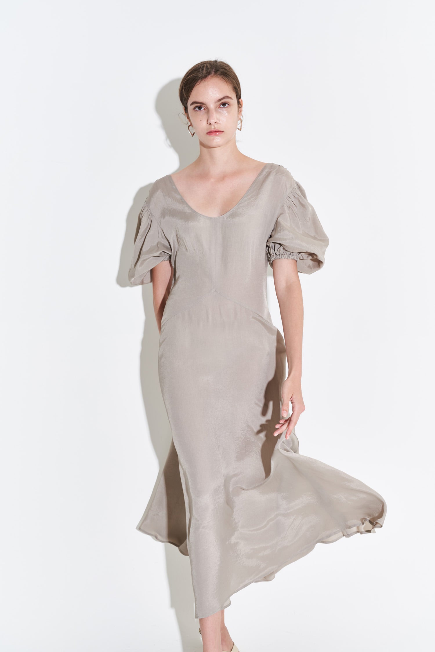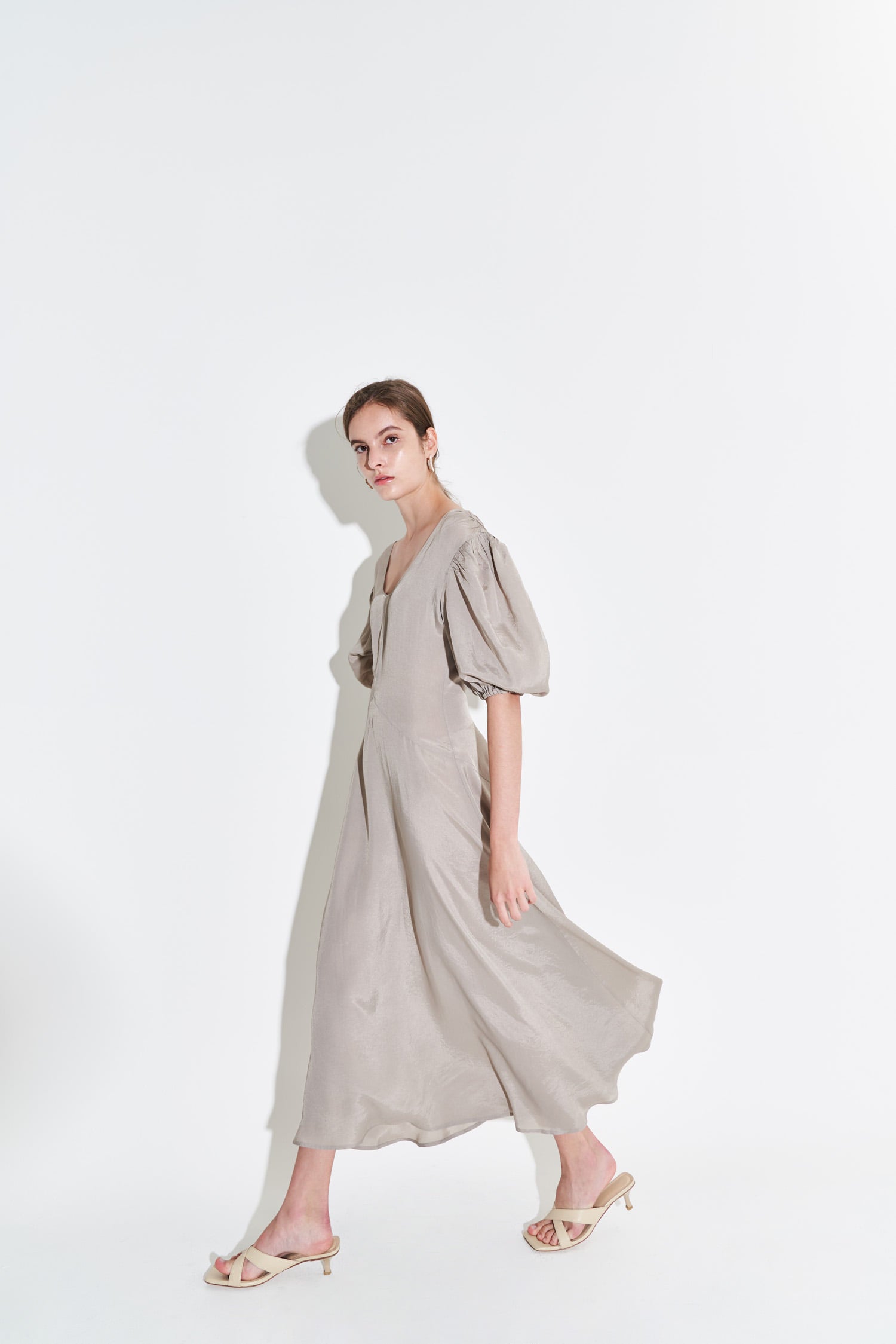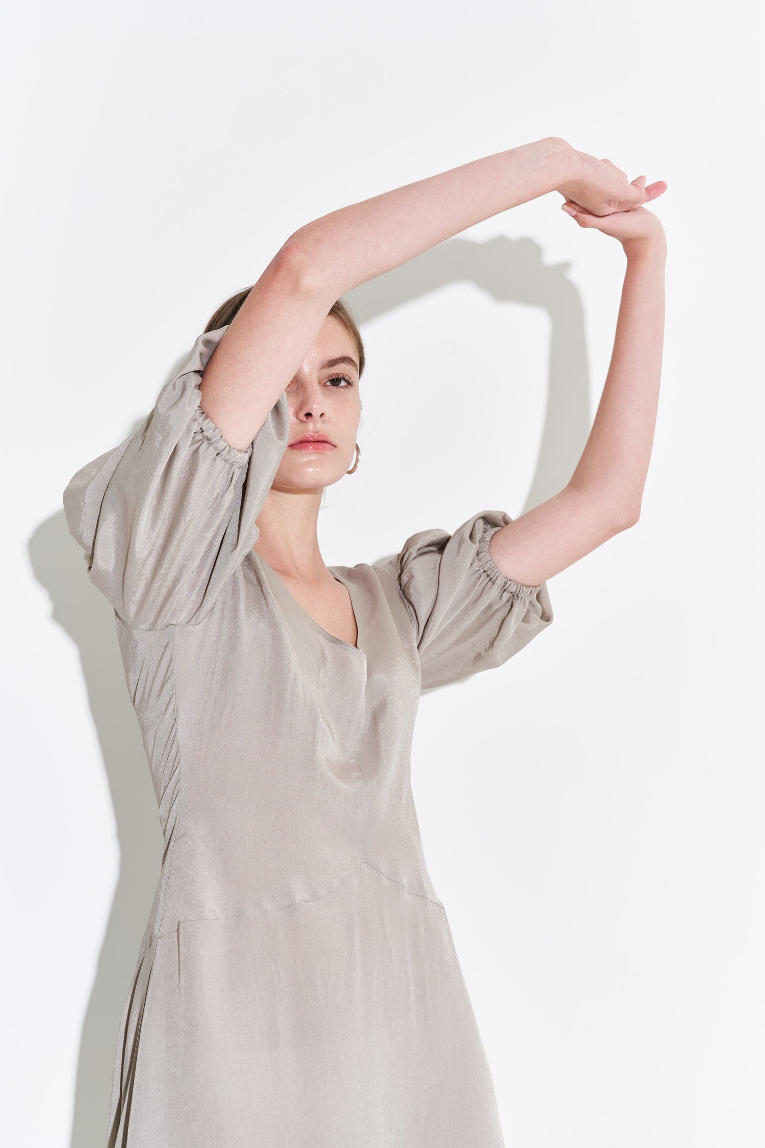 The Laura Ren silk midi dress captures timeless elegance with a touch of modern drama. Crafted from lustrous silk, this women’s dress features a flattering scoop neckline and voluminous puff sleeves that create a bold yet feminine silhouette. The tailored bodice transitions into a softly flared midi skirt, offering graceful movement with every step. Lightweight and fluid, this silk dress is perfect for formal events or elevated daywear. Laura Ren’s commitment to exquisite craftsmanship and sophisticated style ensures this silk midi dress is a luxurious must-have for the contemporary wardrobe.