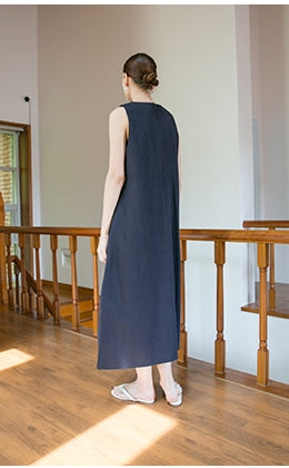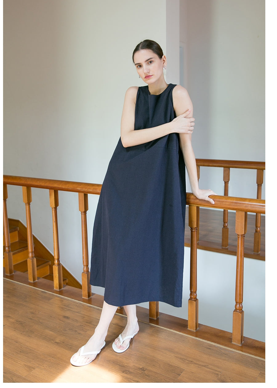 Elevate your summer wardrobe with this sleeveless A-line midi dress crafted from premium linen, offering both breathability and timeless sophistication. The minimalistic silhouette is enhanced by a clean round neckline and structured seam detailing, providing a flattering yet relaxed fit. Designed with comfort and versatility in mind, this dress features a discreet back zipper for ease of wear. Whether styled casually for daytime outings or elevated with accessories for evening affairs, this piece effortlessly transitions between occasions. From the refined women's collection by Laura Ren, this linen dress reflects the brand’s dedication to understated luxury and meticulous craftsmanship.