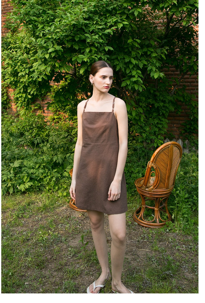 This timeless sleeveless mini dress by Laura Ren is crafted from breathable premium linen, offering lightweight comfort and effortless sophistication. Featuring a square neckline and adjustable slender straps, this A-line silhouette flatters the figure while providing relaxed ease. Ideal for warm-weather styling, the dress is versatile enough to be dressed up or down for a variety of occasions. The linen fabric ensures durability and natural cooling, making it a must-have piece in any refined wardrobe. Laura Ren combines minimalist design with artisan craftsmanship to create a wardrobe essential that transitions seamlessly from day to night.
