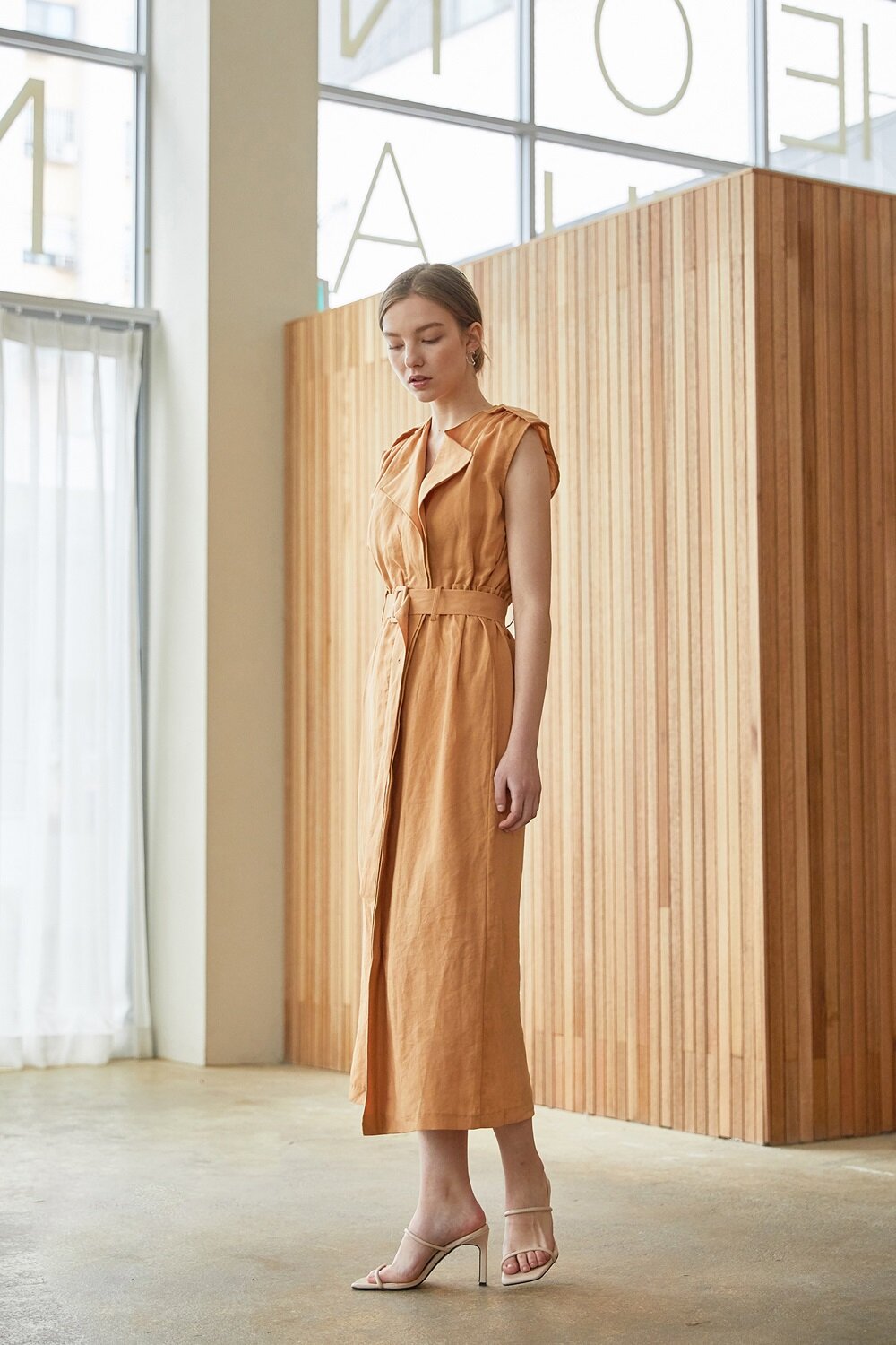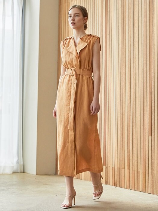 - Premium-quality breathable linen fabric for all-day comfort - Structured notch lapel with sleeveless tailored fit - Removable self-tie belt enhances waistline definition - Midi length ideal for polished everyday or event wear - Designed by Laura Ren to blend elegance with modern utility