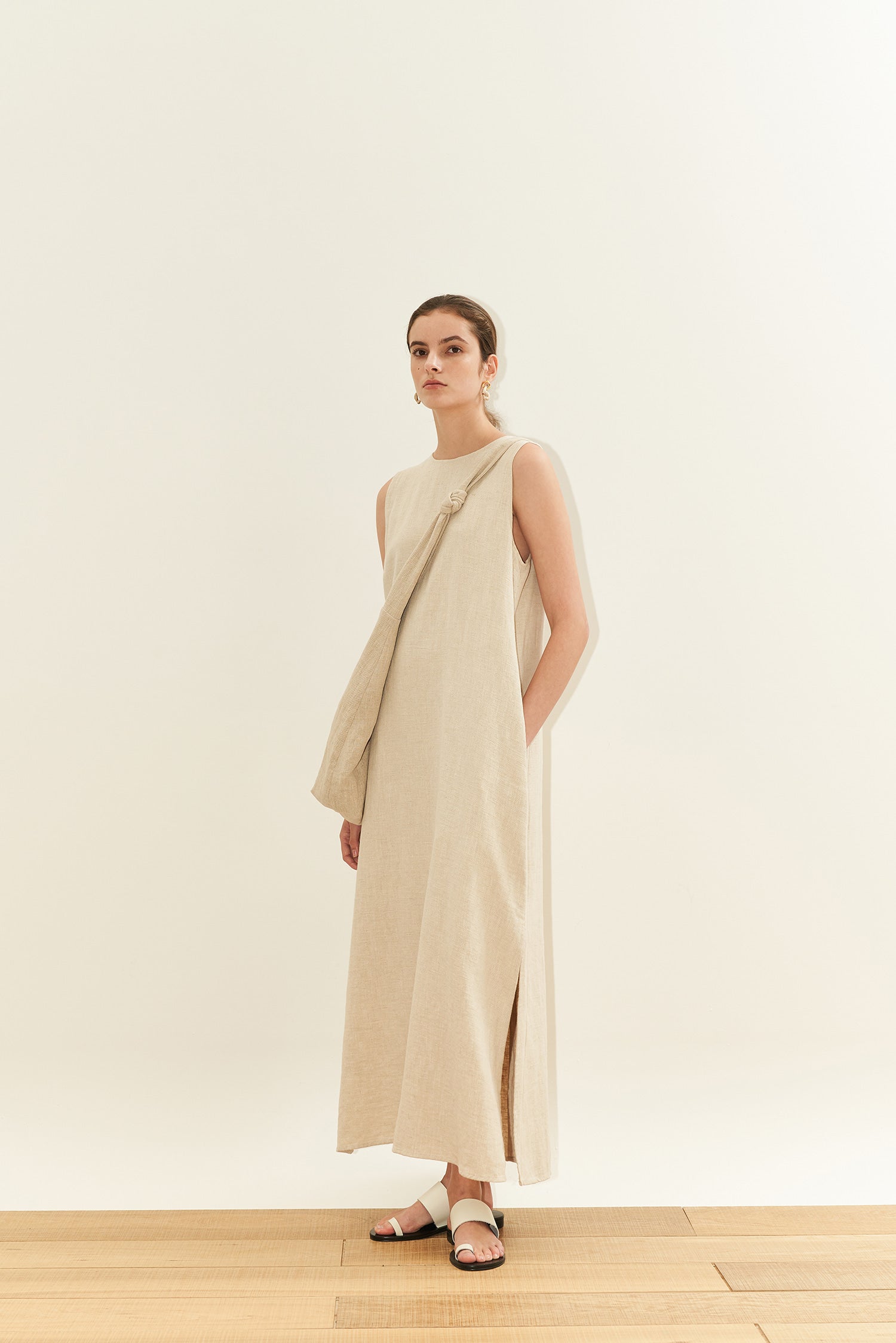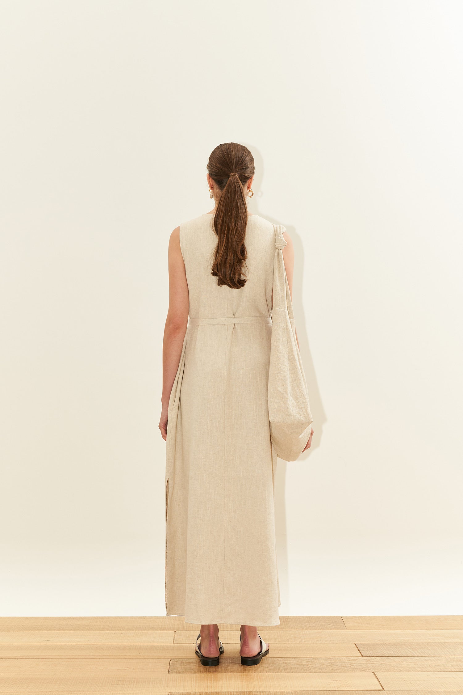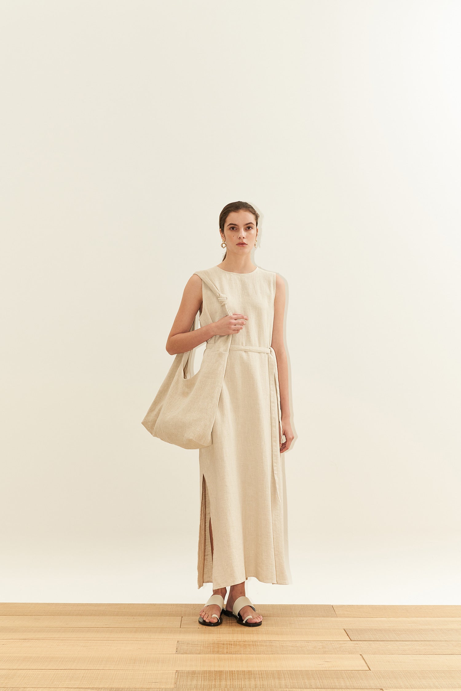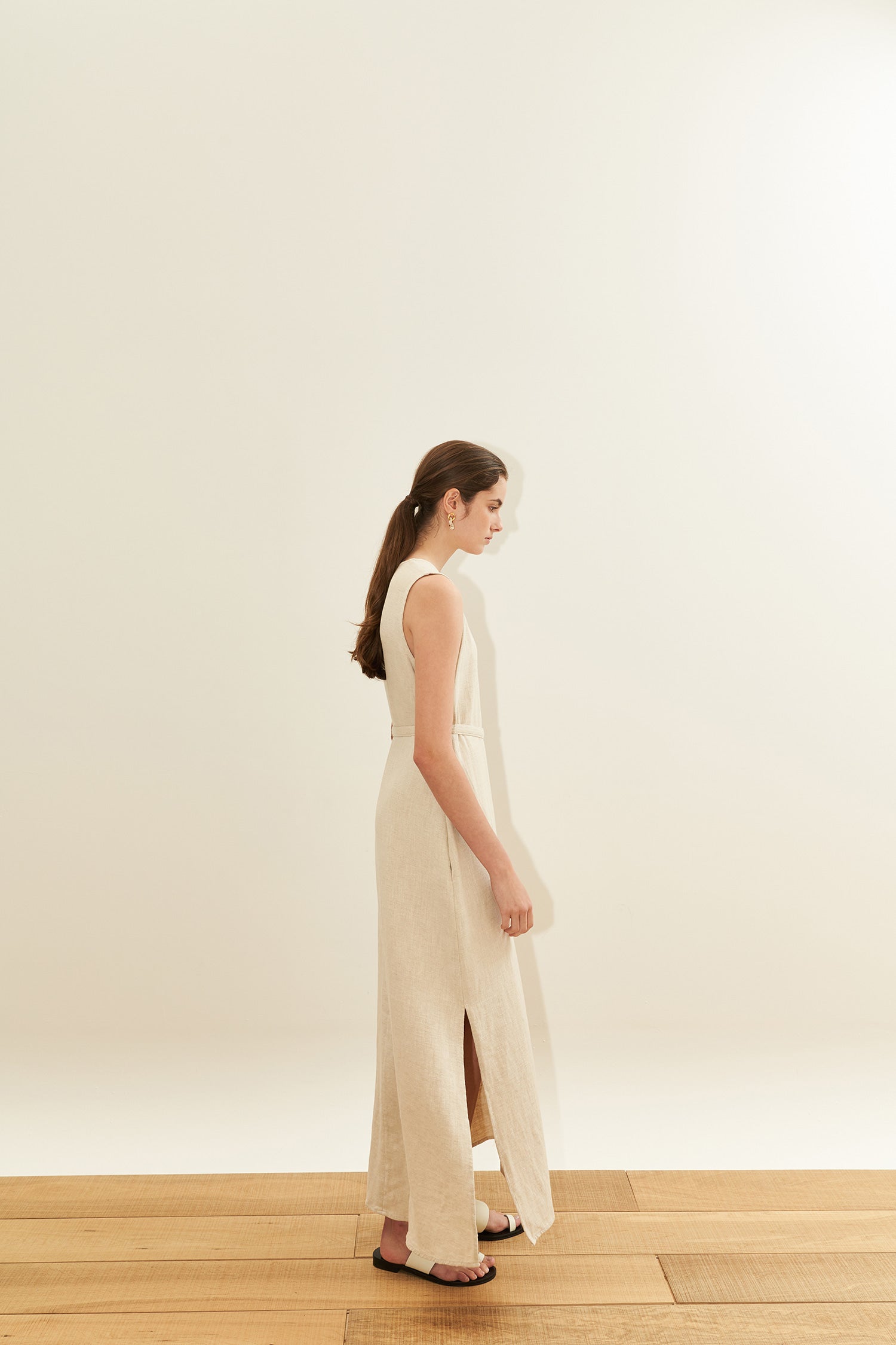 This sleeveless linen maxi dress by Laura Ren offers an effortlessly refined silhouette, ideal for warm-weather sophistication. Designed with a clean, minimalist aesthetic, it features a round neckline, belted waist for gentle shaping, and a subtle side slit that enhances movement and breathability. The natural texture of the linen fabric lends organic elegance and everyday comfort—perfect for city strolls, coastal getaways, or casual office styling. Whether paired with sandals or elevated with accessories, this breathable, eco-friendly piece makes an essential addition to the modern woman’s wardrobe.