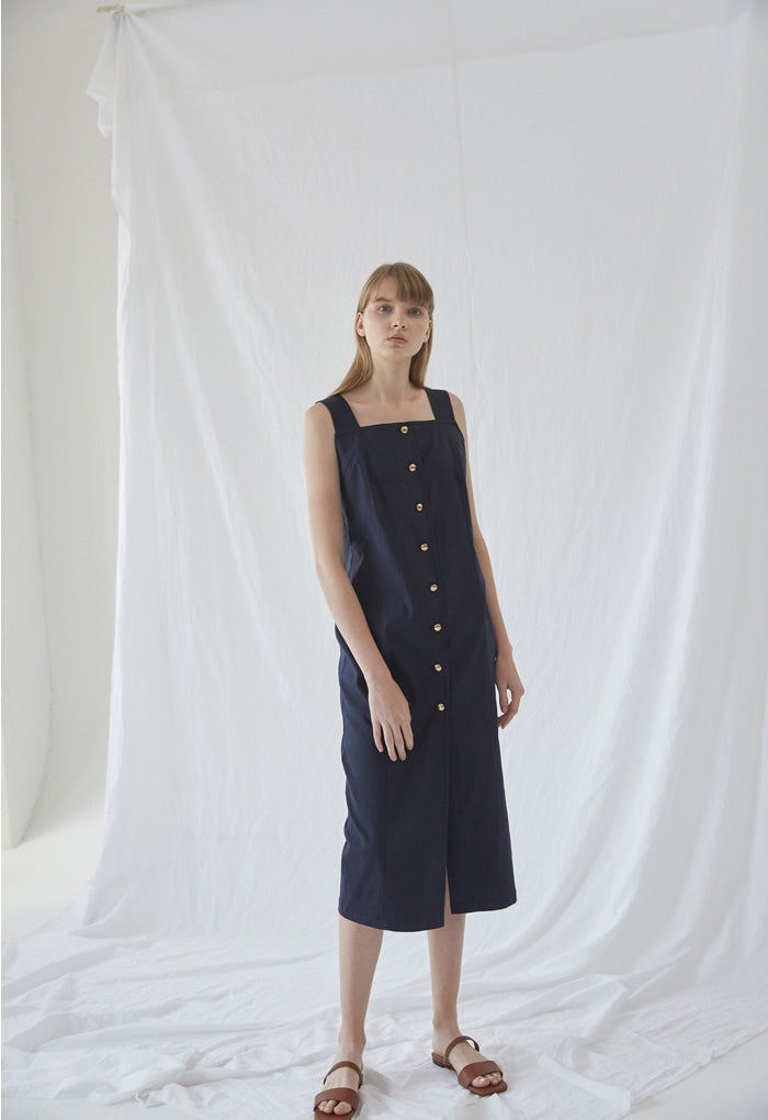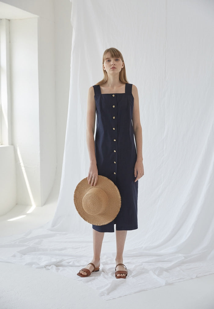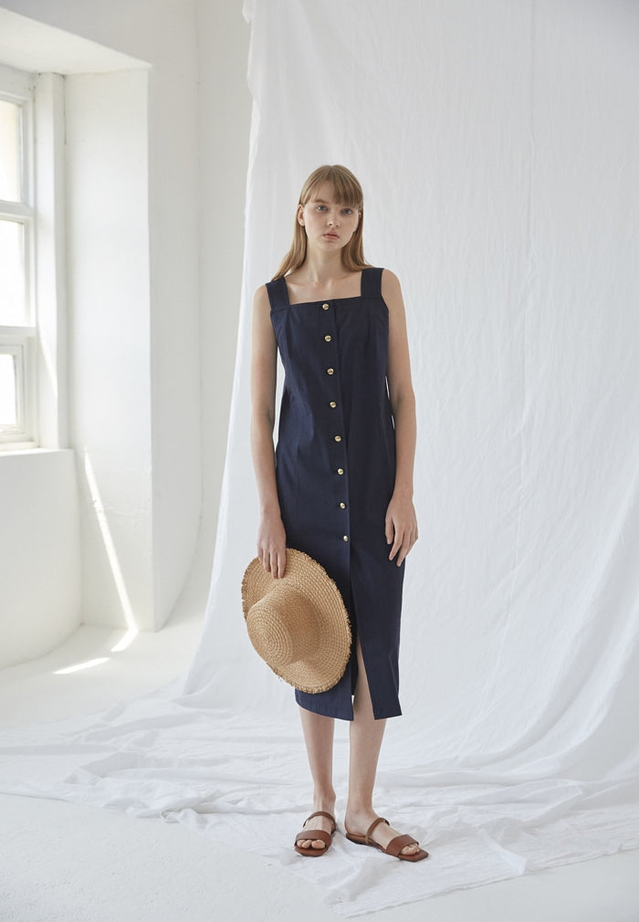 Effortlessly chic and warm-weather ready, this sleeveless linen midi dress by Laura Ren is a study in modern minimalism. Featuring a structured square neckline and a full front button placket, it delivers clean lines with a refined silhouette. The breathable linen fabric keeps you cool and comfortable, while the tailored fit and front slit add just the right touch of movement. Whether paired with sandals for casual outings or styled with flats for city strolls, this Laura Ren dress is a versatile staple that balances polish and ease.