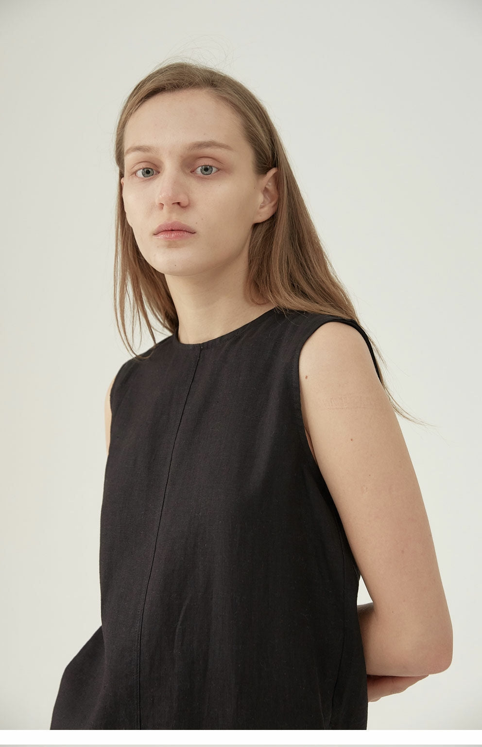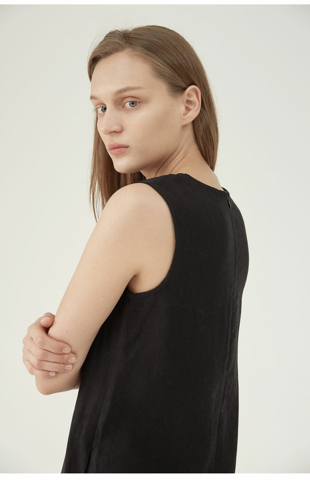 Sleeveless Linen Midi Dress with Minimalist Silhouette and Back Zipper Closure for Women