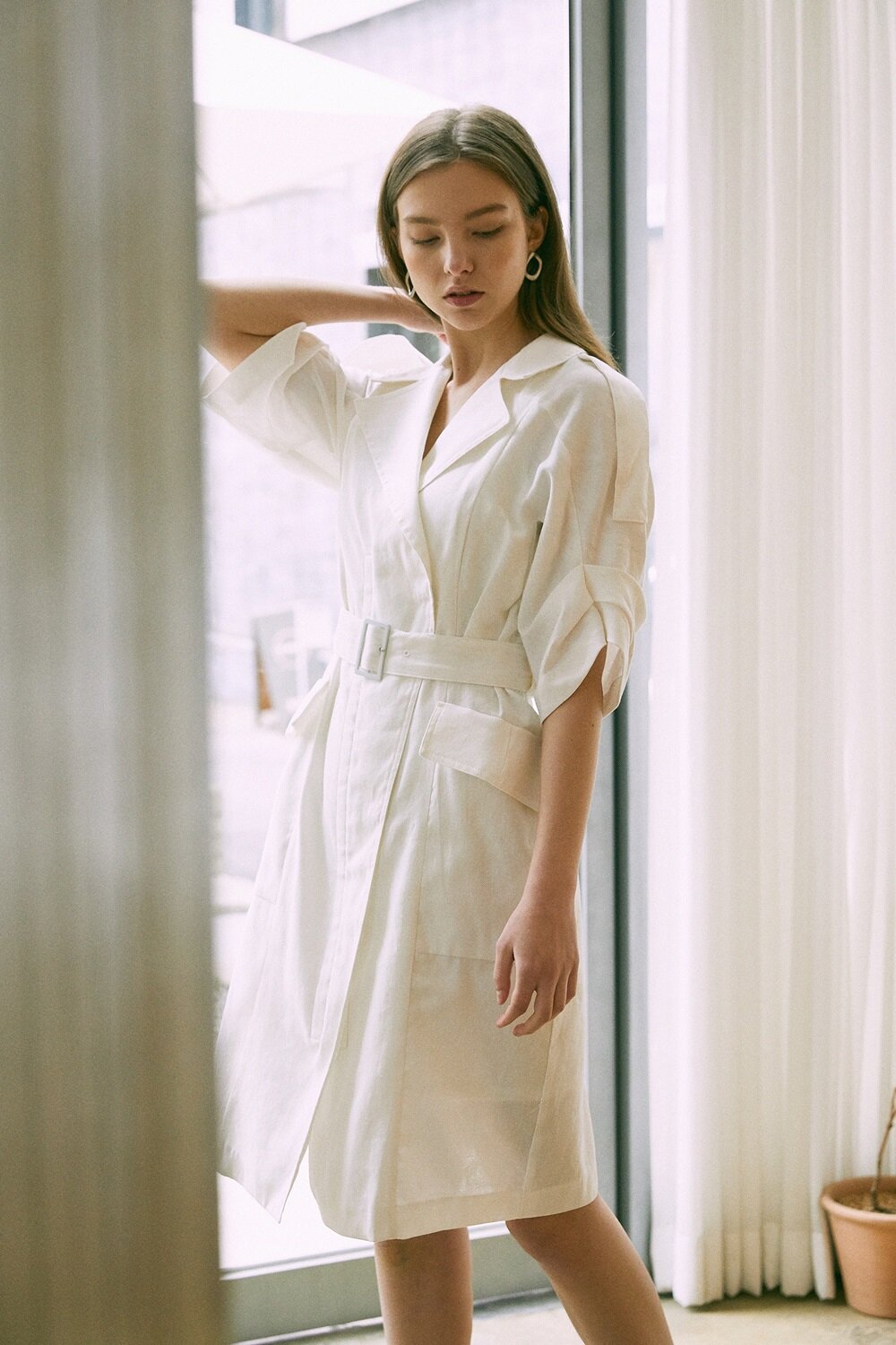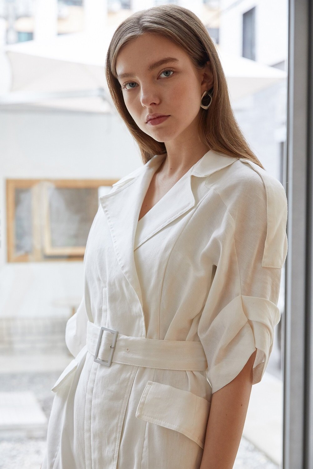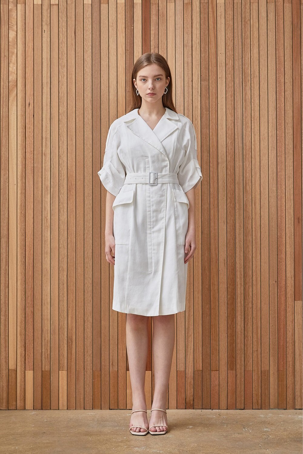 The sleeveless linen dress by Laura Ren is the ultimate staple for sophisticated summer dressing. Crafted from breathable, natural linen, this tailored silhouette features a chic notched lapel collar, structured shoulders, and a cinched waist with a matching fabric belt for a flattering fit. Front flap pockets add a utilitarian touch, while the clean, structured lines elevate its refined appeal. Perfect for warm-weather occasions, this dress blends comfort with timeless elegance. Whether worn with heels for a polished look or sandals for relaxed charm, Laura Ren’s linen midi dress is a must-have in any curated wardrobe.